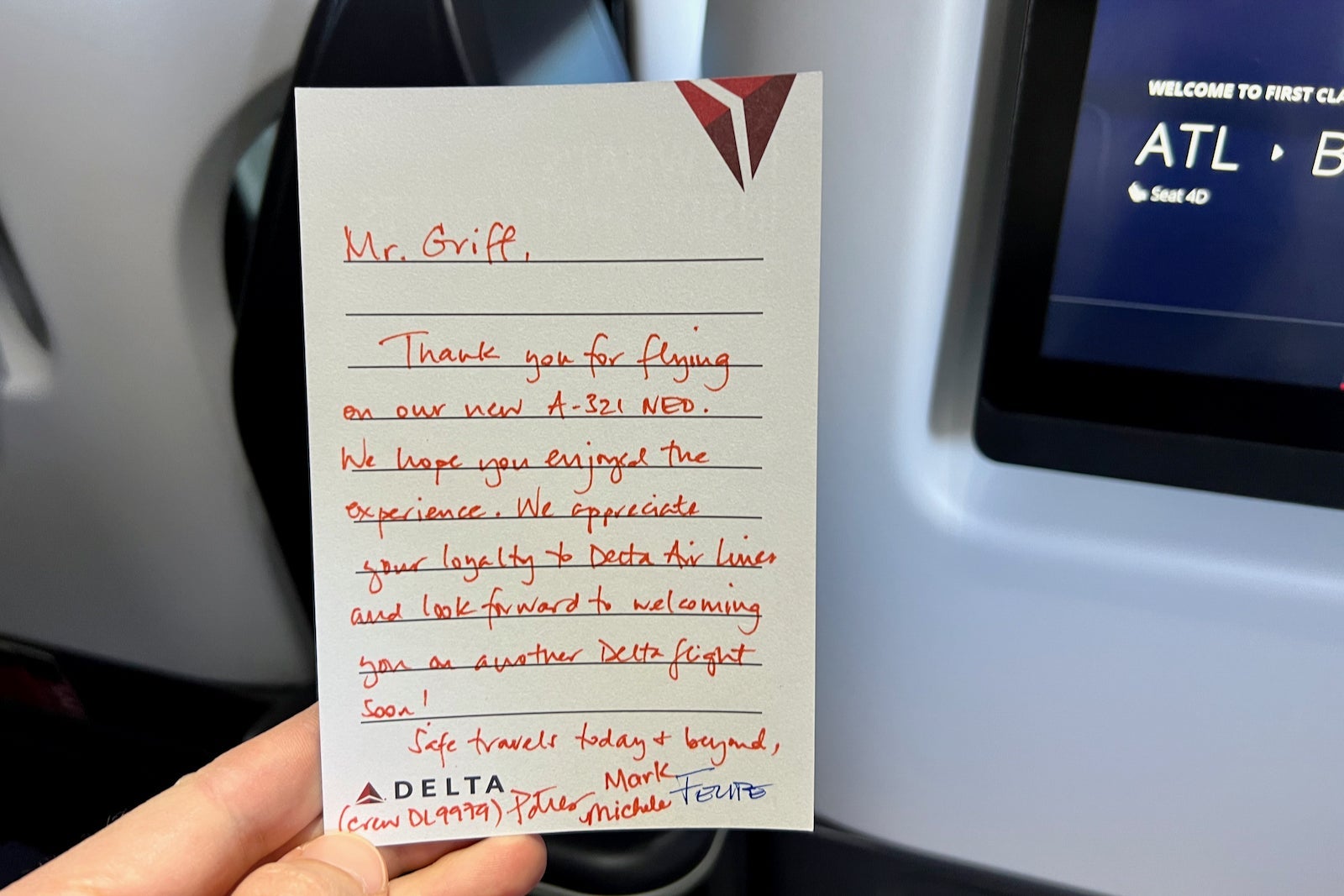 A handful of Boston-based Delta employees greeted us as walked off the jet bridge, and they were clapping and cheering as we walked off the plane.