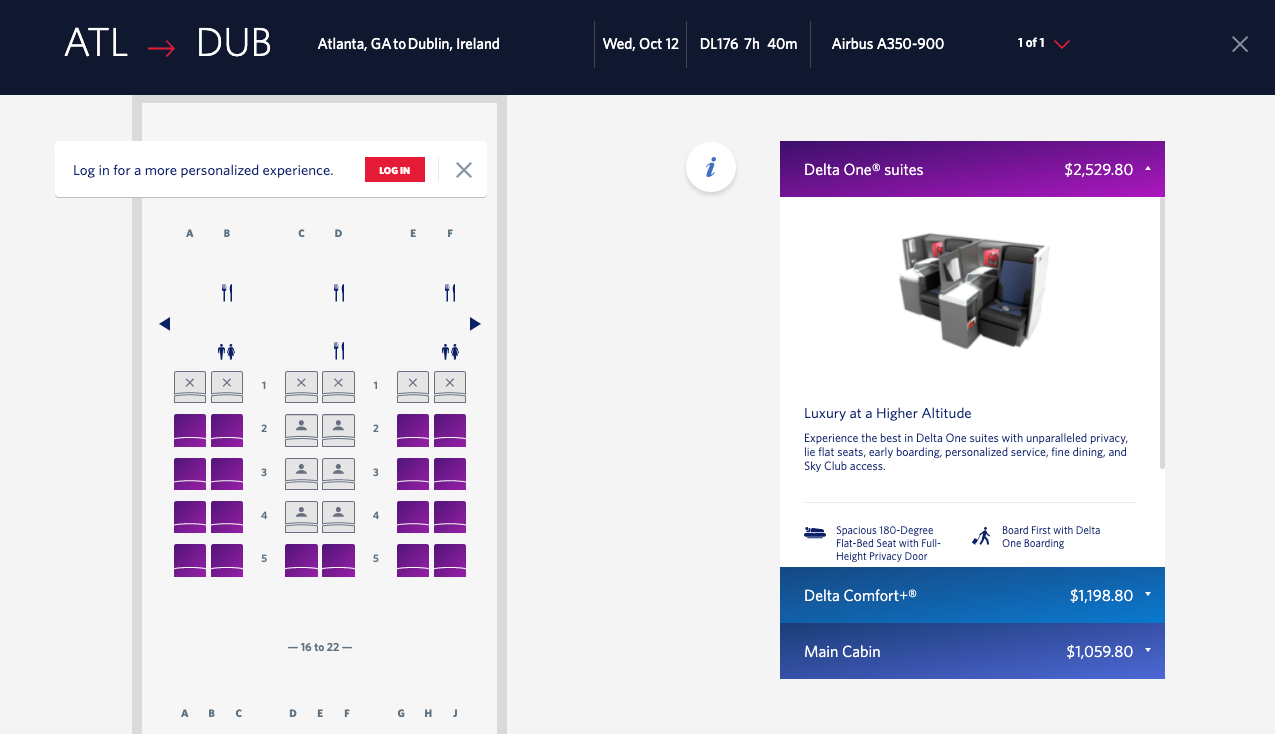 Moreover, when searching for business-class fares, tickets on these ex-LATAM jets are marketed as "Delta One Suites" despite being a night-and-day difference from the private pods on the other A35s.