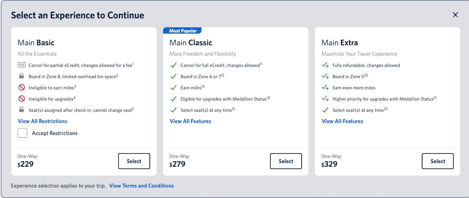 That could conceivably mean booking a $1,500 first-class seat but not getting to actually select your seat — or, perhaps, earning fewer SkyMiles on your flight.