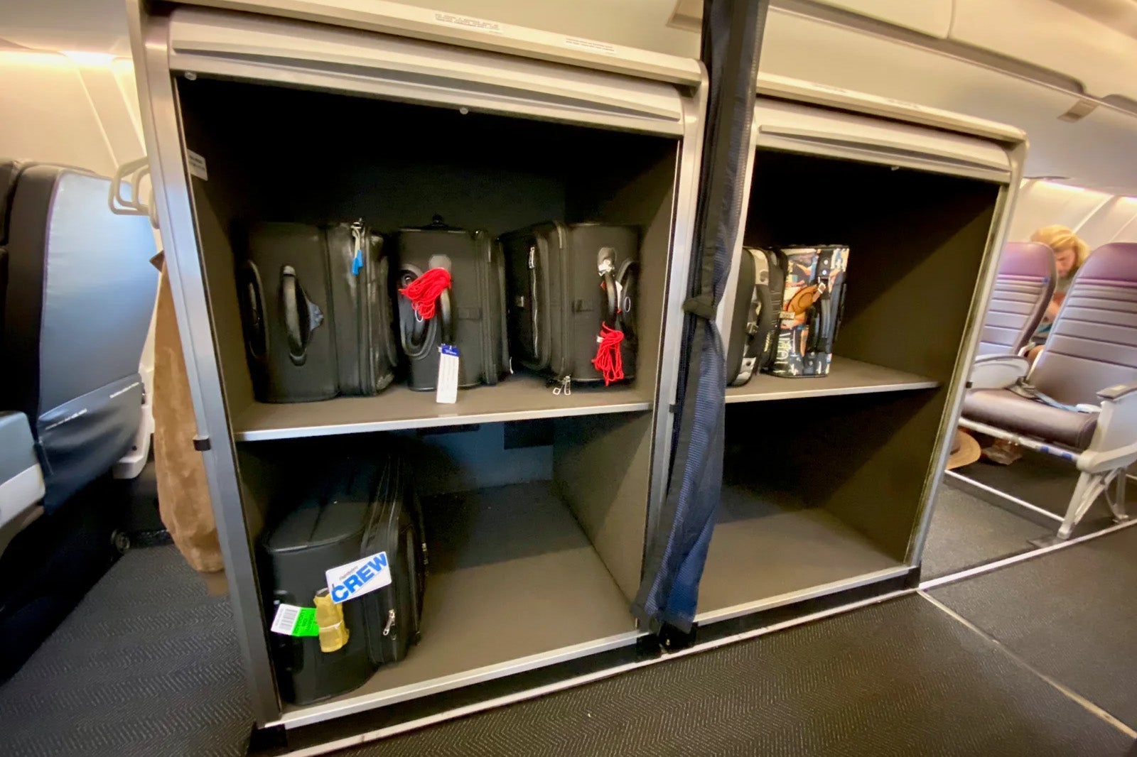 Unlike other regional jets, the CRJ-550 will also feature three special luggage closets between first class and economy, with space for a handful of full-size rollaboards. Typically, when flying on a small regional jet, large carry-on bags must be gate-checked or valeted for delivery after the flight.