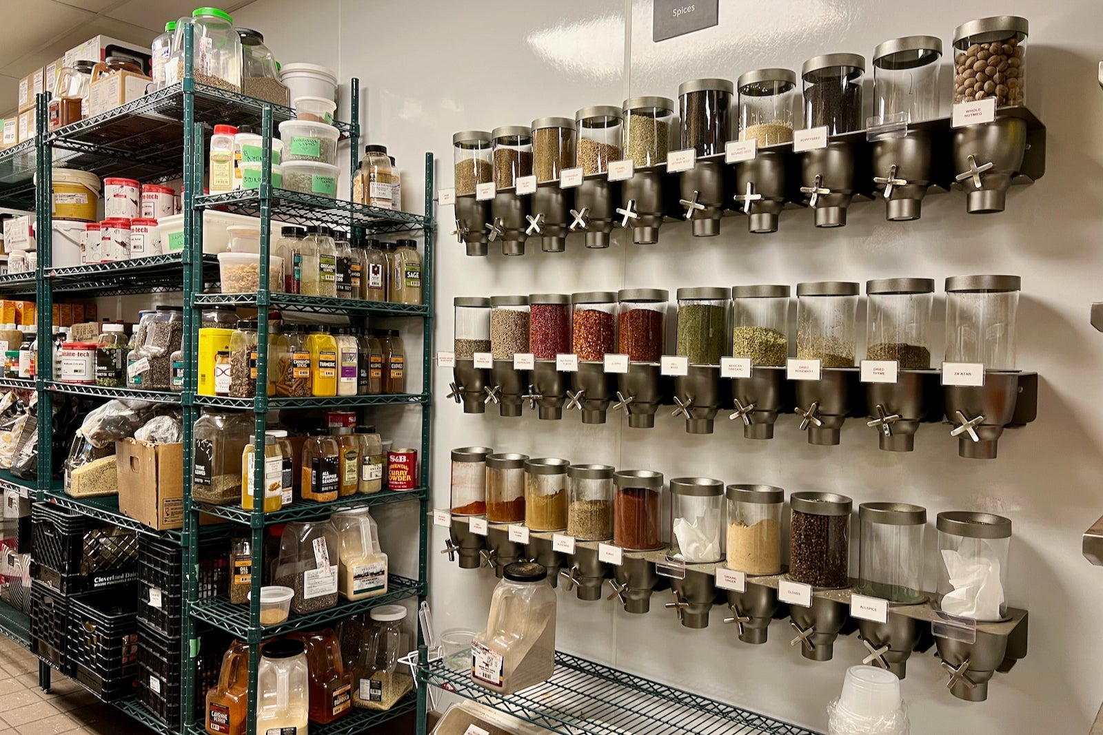 The Delta operation begins in one of the kitchen's three walk-ins, where the raw ingredients are stocked almost exactly as you'd find them in a grocery store. The dairy products are in the first aisle, followed by the produce and so on.