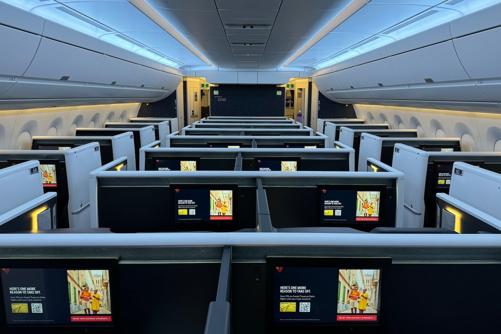 The aircraft sports Delta's more premium-heavy configuration, with 40 Delta One suites, 40 Premium Select recliners and 36 Comfort+ seats (along with 159 seats in the main cabin).