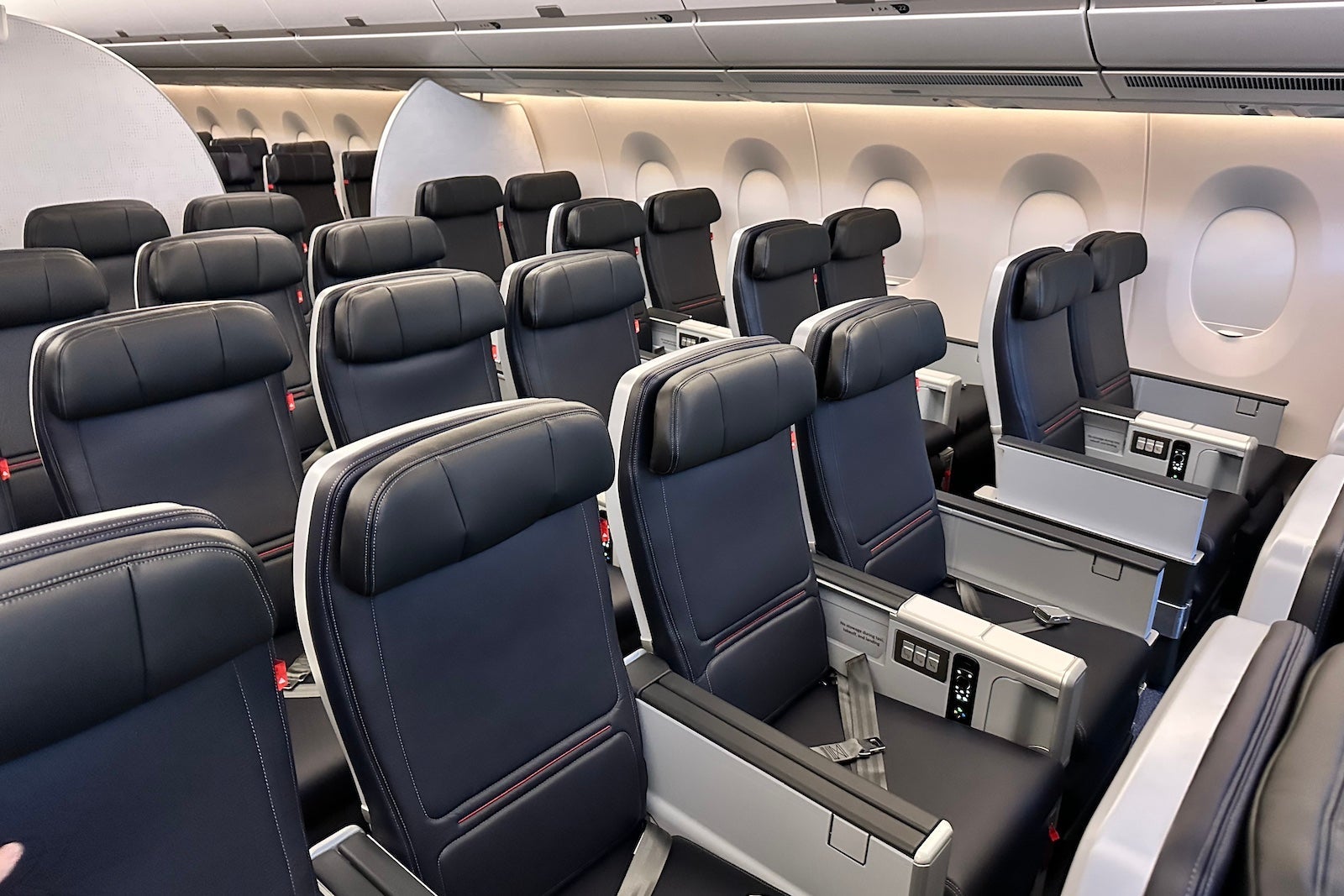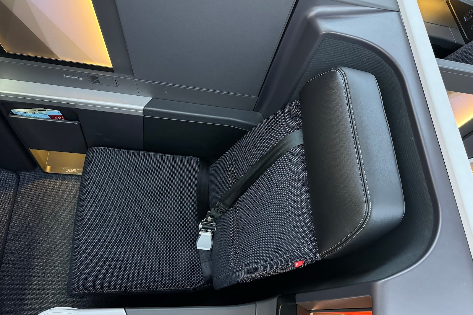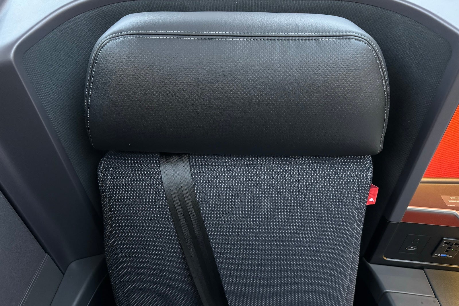 In Delta's three remaining cabins on this A350, you'll still find traditional leather seat coverings but with the new darker color palette.