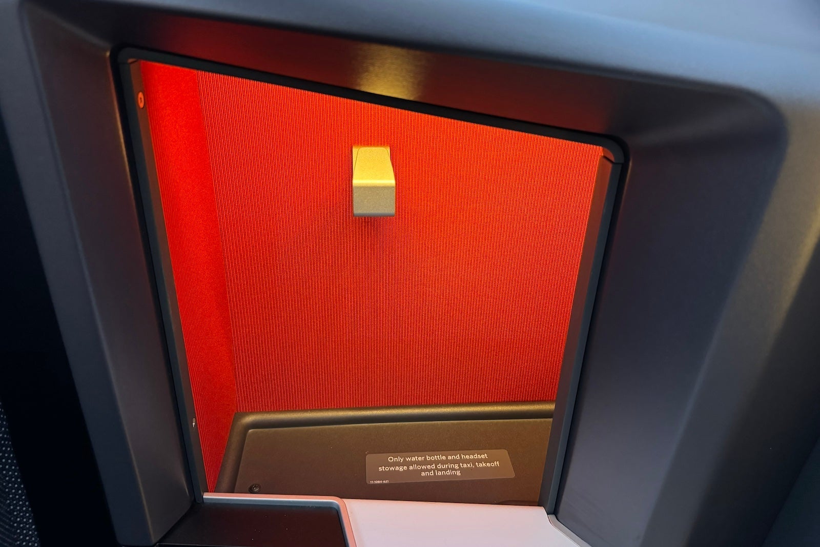 We mentioned splashes of red: In the business cabin, you'll find that in the storage cubbies (not unlike existing Delta One suites) and on small tags with the Delta widget decorating each seat.