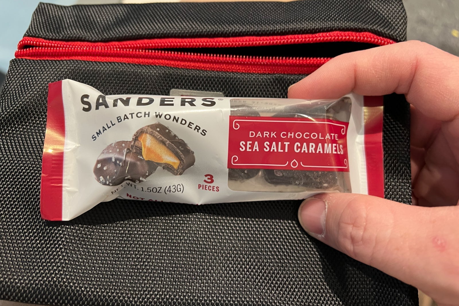 The "decor and restrooms are really nice," according to the reader. Travelers passing through the lounge on day one received a small Tumi-branded pouch, filled with some Detroit-themed giveaways including a postcard and Sanders chocolates. These swag bags were gone by 4:30 p.m.