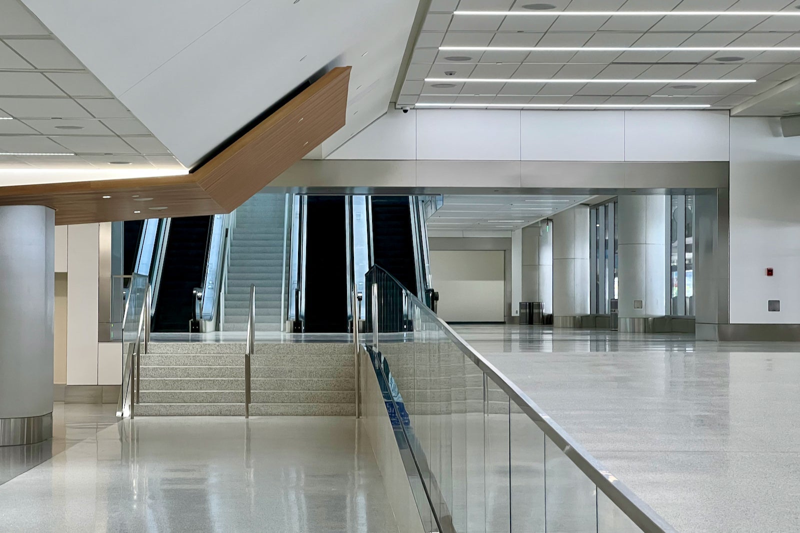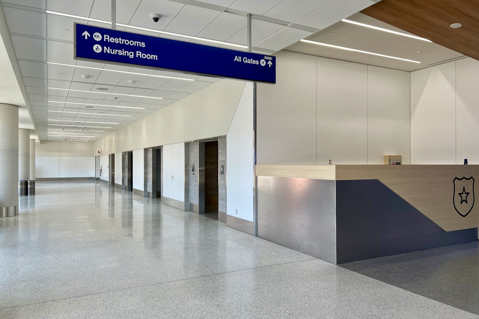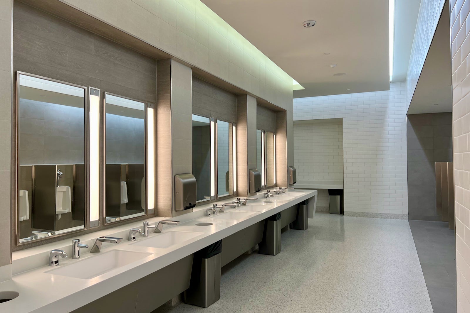 The check-in hall is also home to a set of restrooms, which feature individual stalls, mirrored walls and touchless sinks — a big improvement compared to the outdated facilities in Delta's existing Terminals 2 and 3.