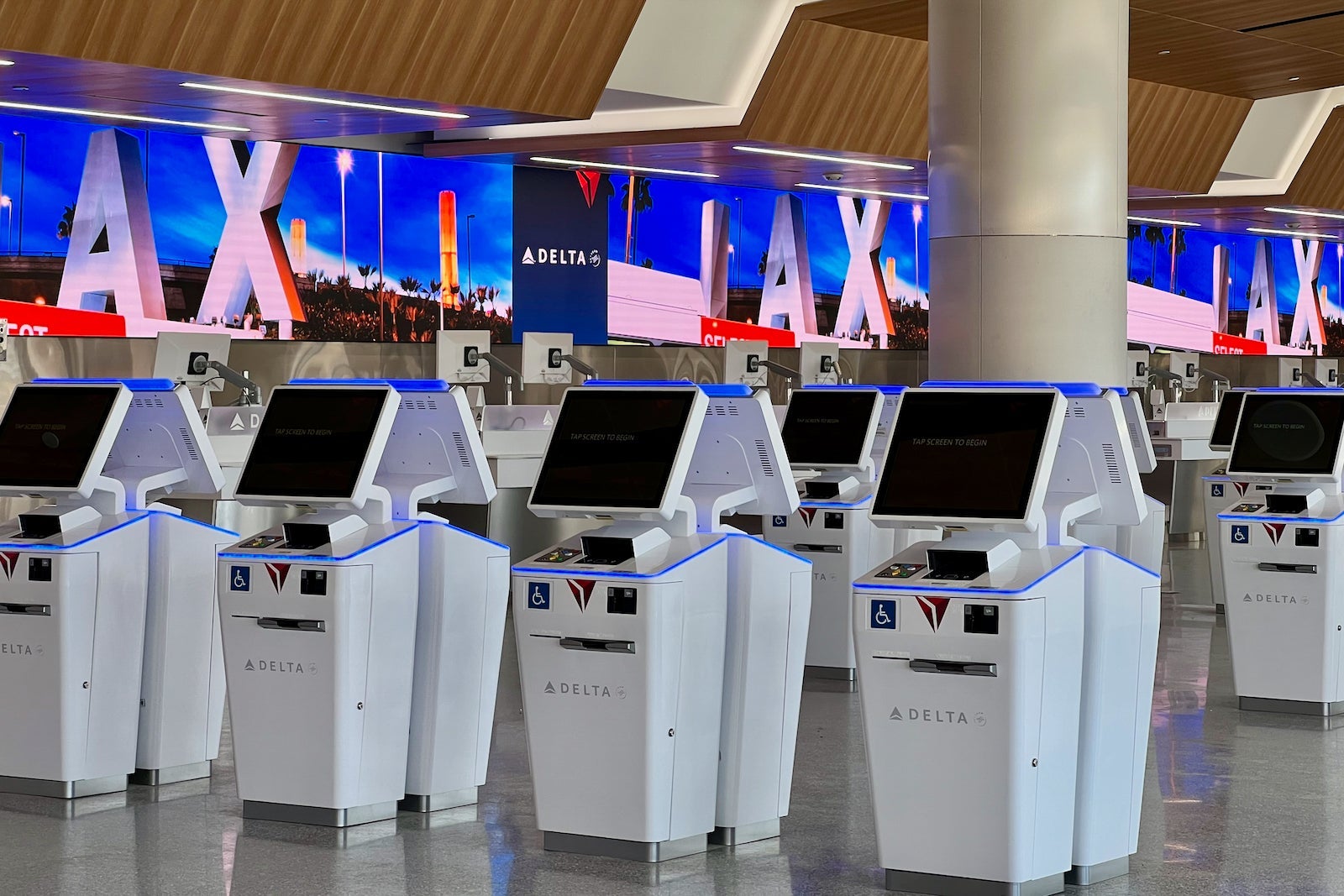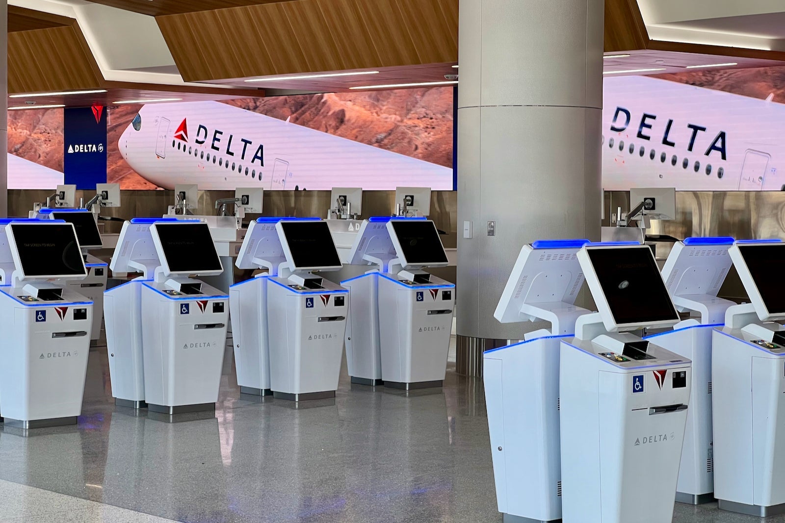 Many of the check-in counters also have iPads pre-installed for biometric, hands-free bag drop, an opt-in service that Delta has been piloting in Atlanta and Detroit.