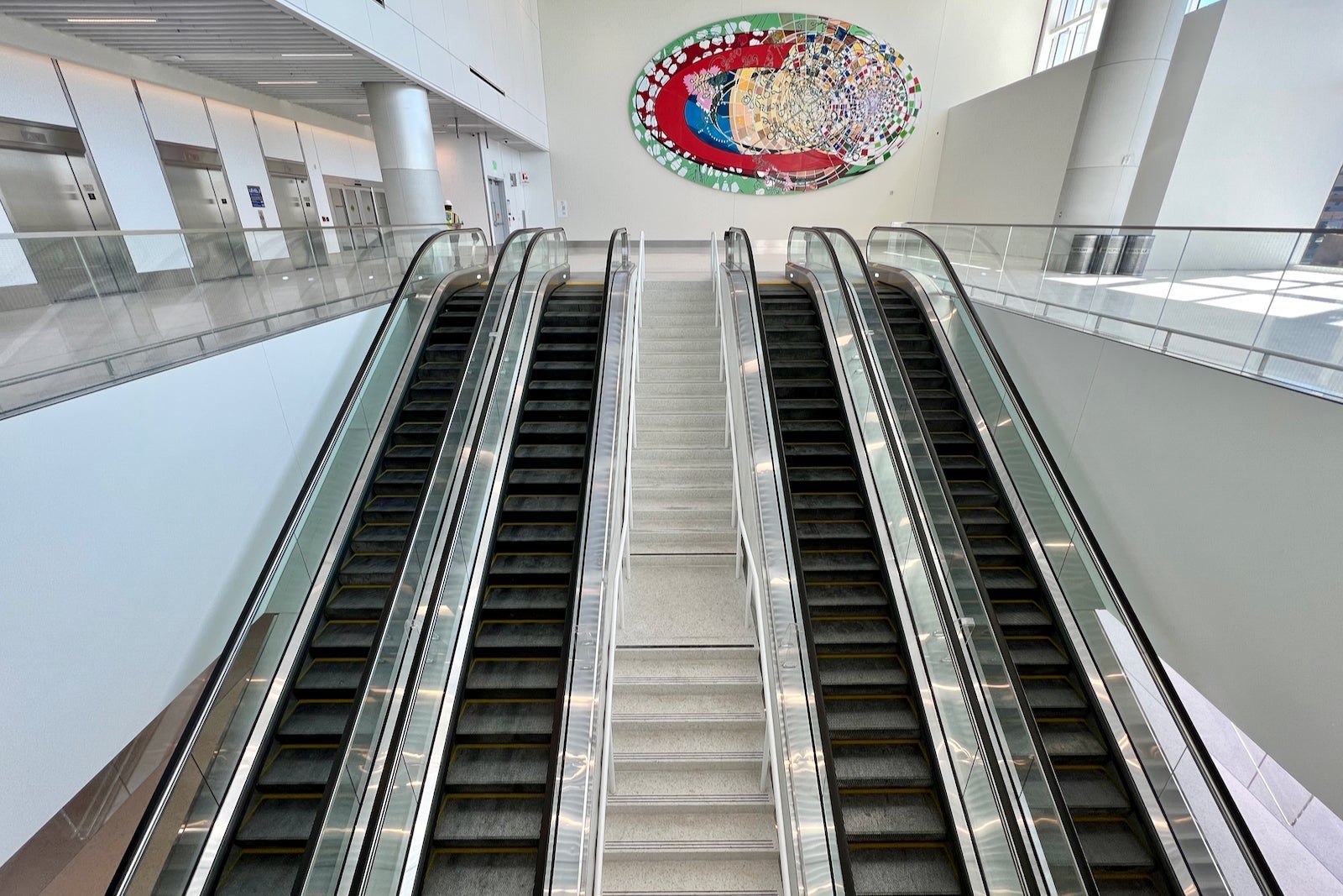 There are two sets of escalators, plenty of elevators and some stairs to bring you to the third level.
