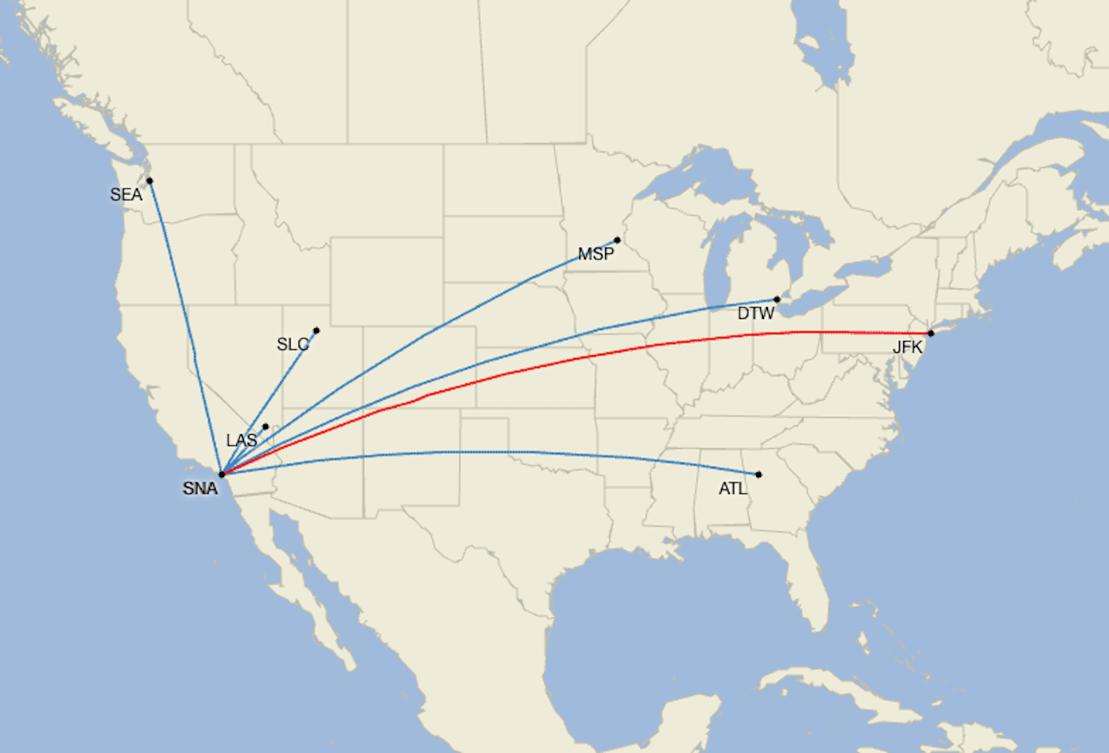 Delta currently flies to several of its hubs from SNA, but this new Delta One-equipped 757 service will certainly headline its offerings at the airport going forward.