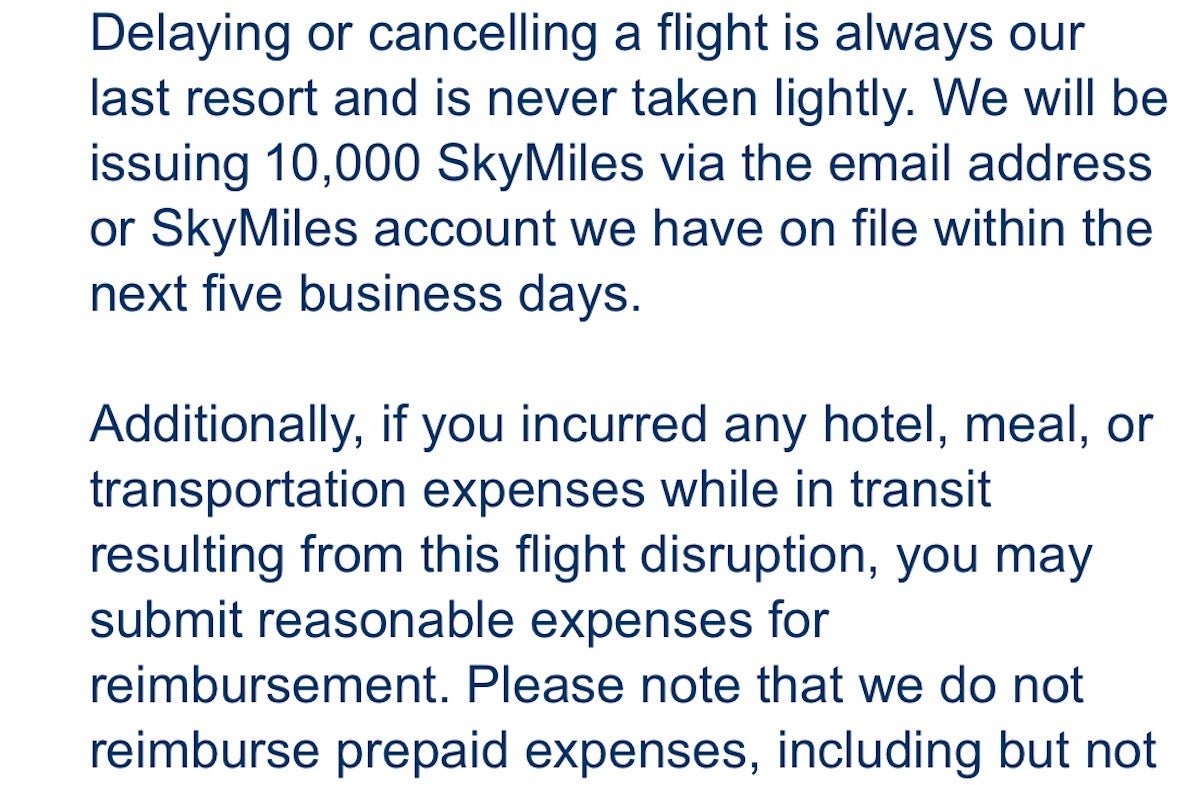 Bastian also said the carrier is providing travel vouchers and SkyMiles to affected passengers "as a further gesture of apology."