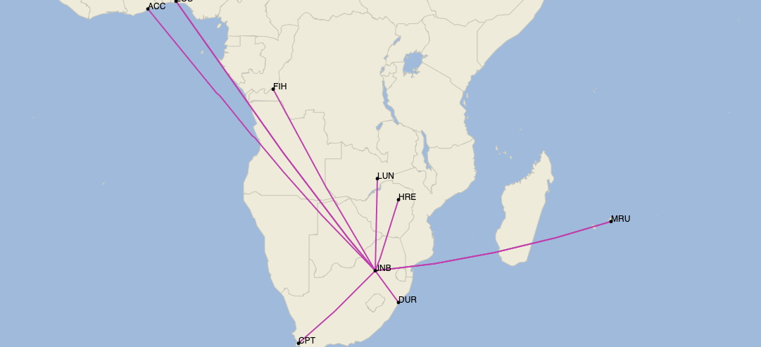 Then, the pandemic hit, and SAA entered a 17-month administration, a form of bankruptcy. At one point, the carrier had paused all of its operations. Now, the Star Alliance member is flying again, but its flights only go as far as Kotoka International Airport (ACC) in Accra, Ghana, and Murtala Muhammed International Airport (LOS) in Lagos, Nigeria.
