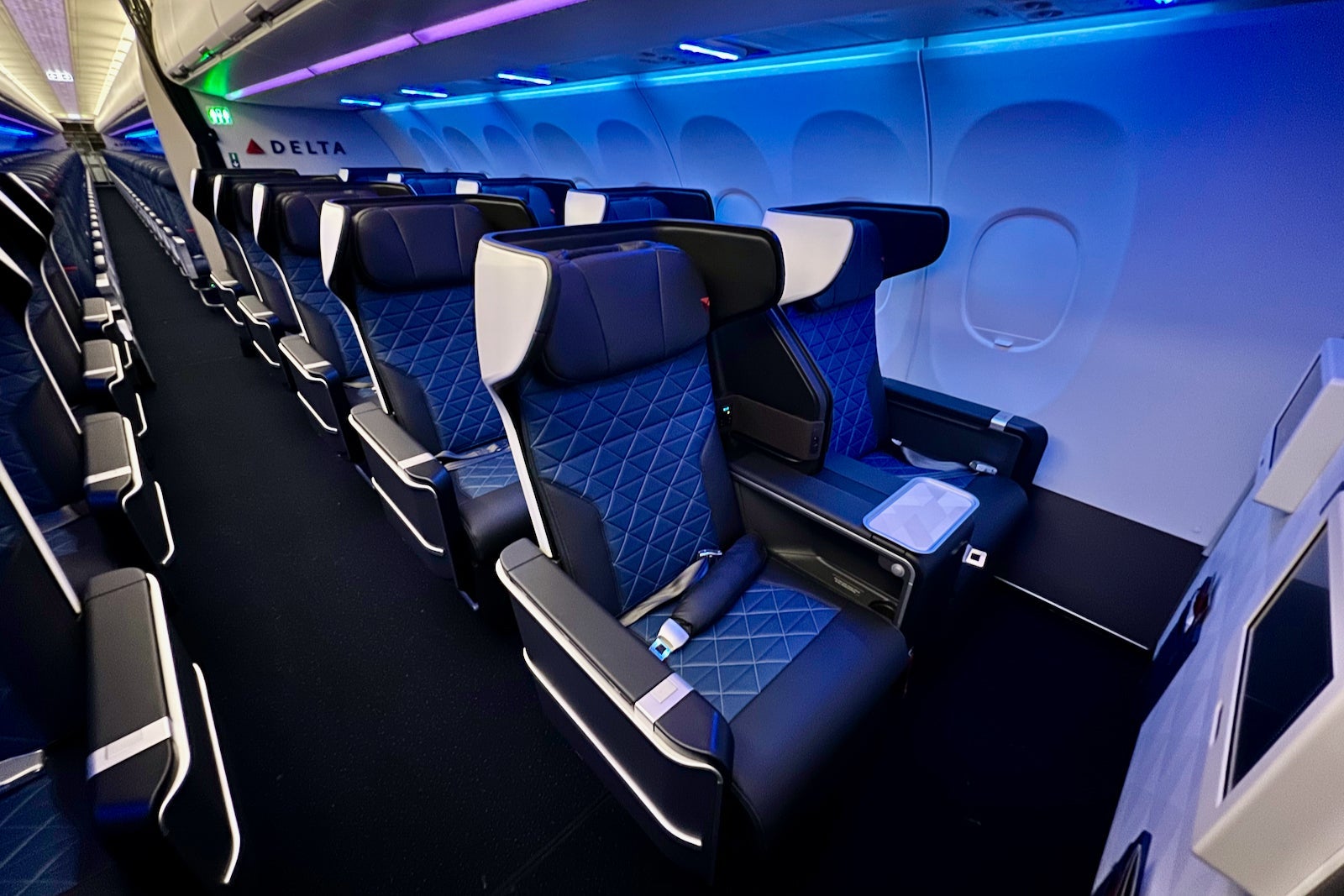 Perhaps the biggest change is in the pointy end of the plane. The A321neo is the first jet to feature Delta's snazzy new domestic first-class recliners.