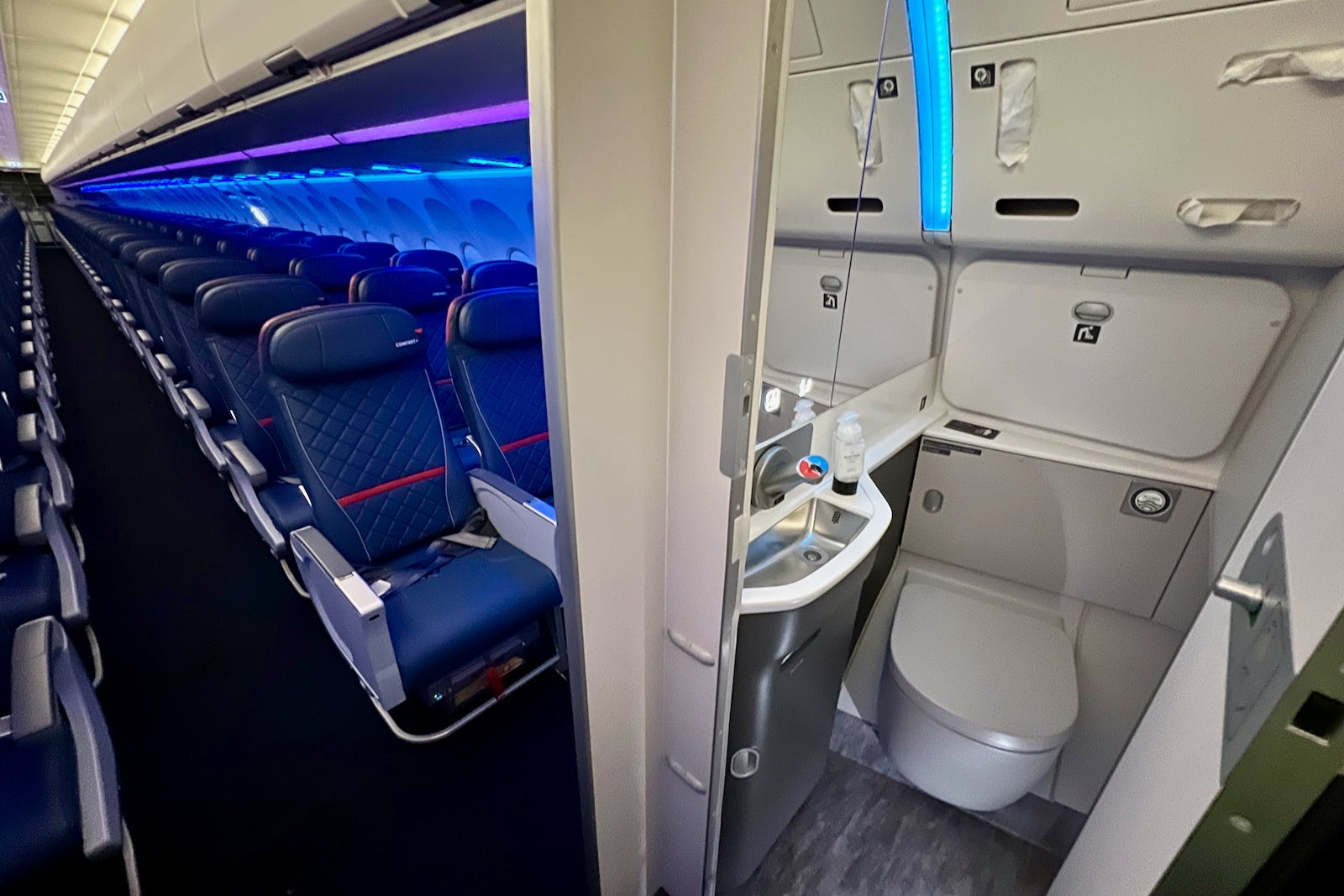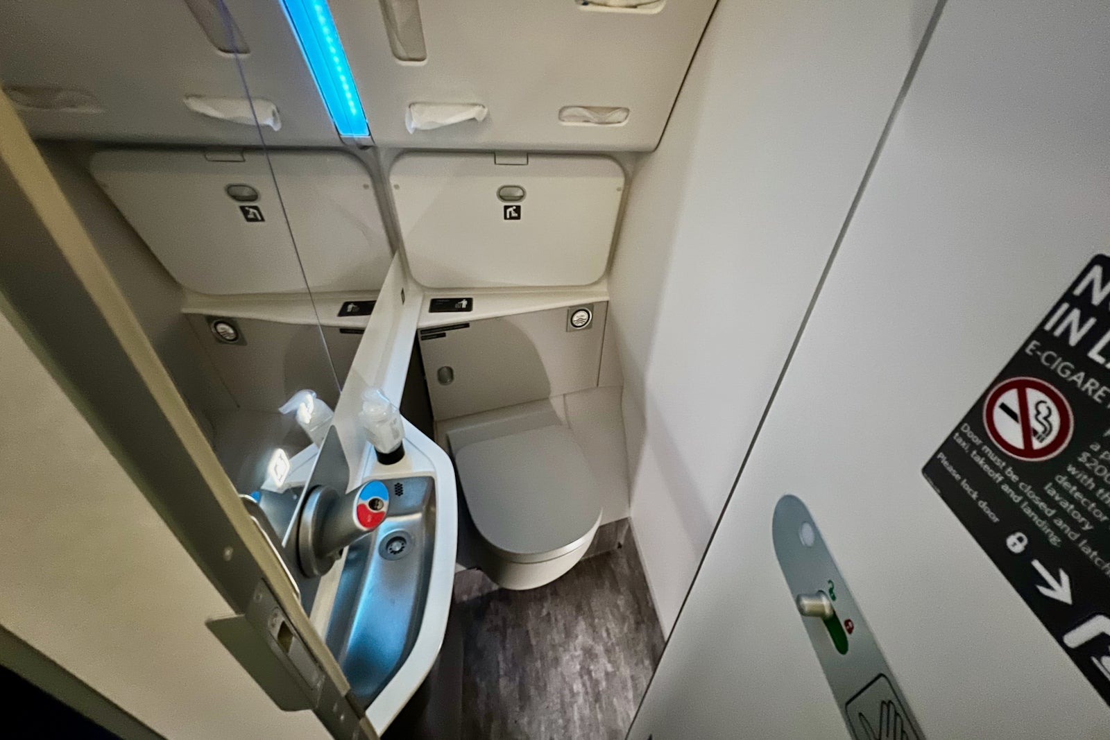 While not as small as the bathrooms on American's Boeing 737 MAX, these lavatories are noticeably more compact than those on older jets.