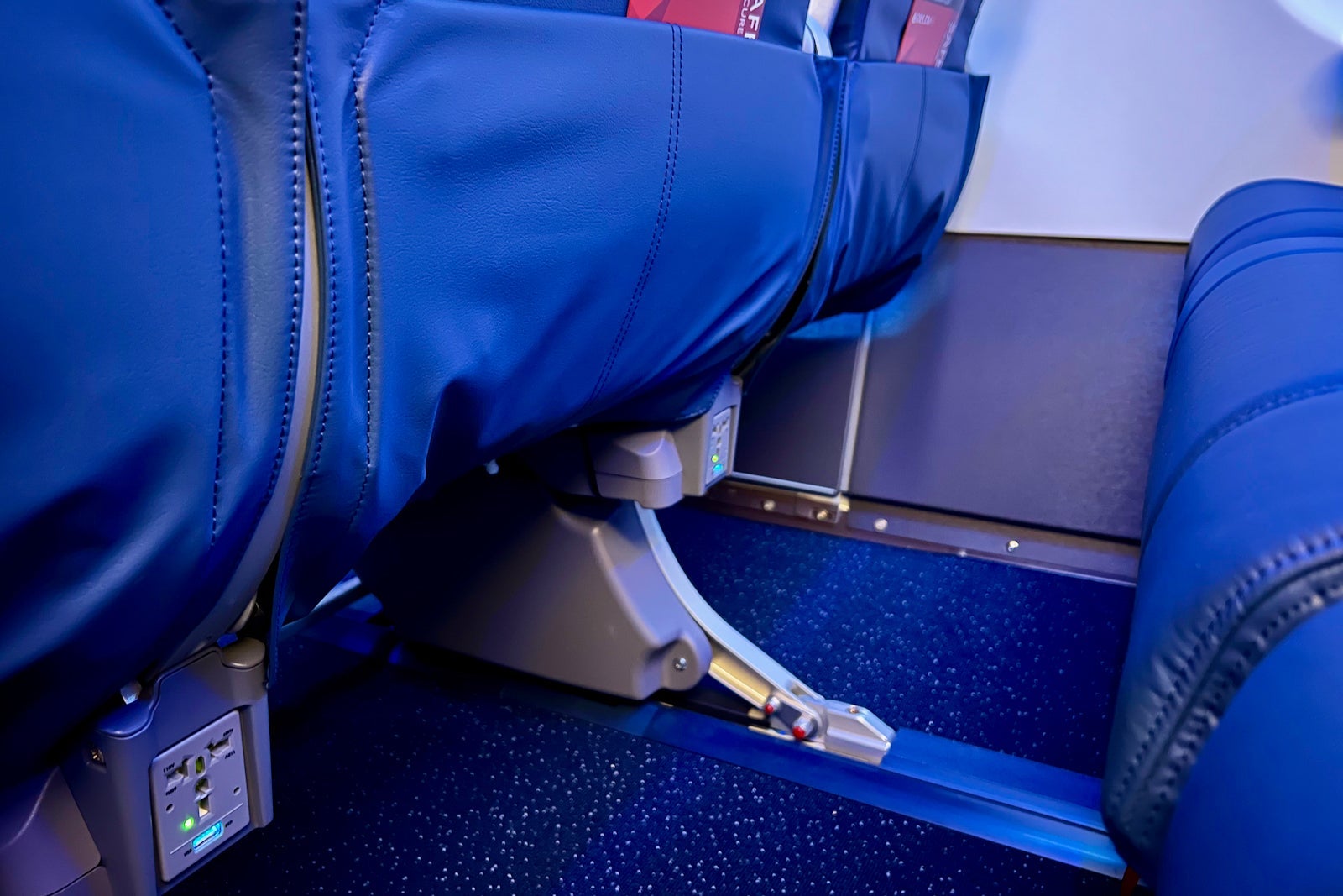 If there's one downside to the new seat, it's the footwell area. That's because there's an entertainment and power box that "pancakes" the seat-support column. This cuts into both your underseat storage and space for your feet.
