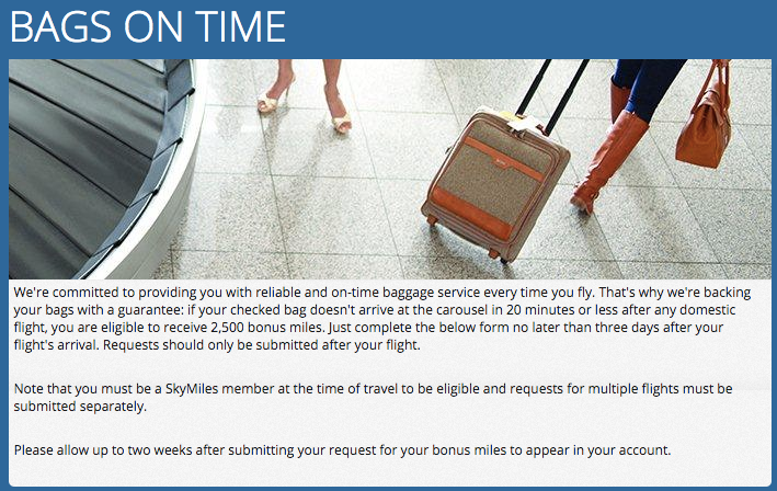 Earning 2,500 SkyMiles with Delta's Baggage Guarantee