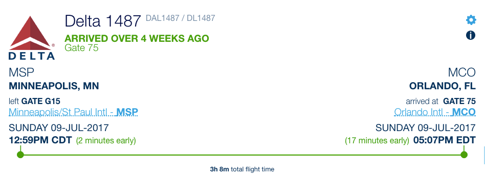 We had an easy connection in Minneapolis and actually landed early in Orlando, a nice way to wrap up the vacation: