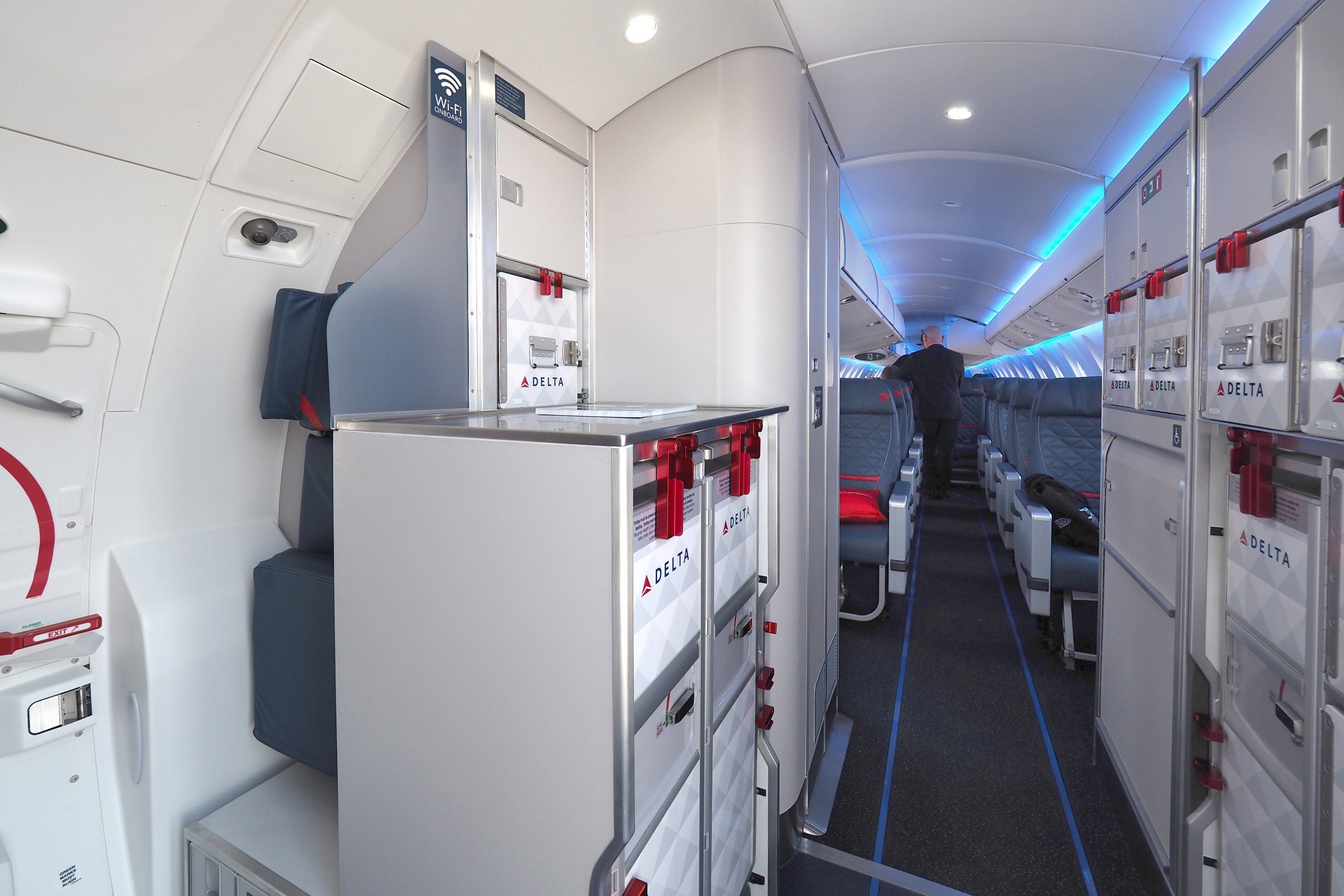 Delta's economy cabin has actually shrunk a bit, dropping from 44 seats to just 38 — you'll not only have a roomier cabin, you'll also be sharing it with fewer passengers.