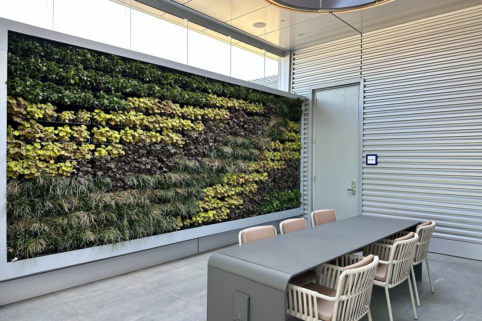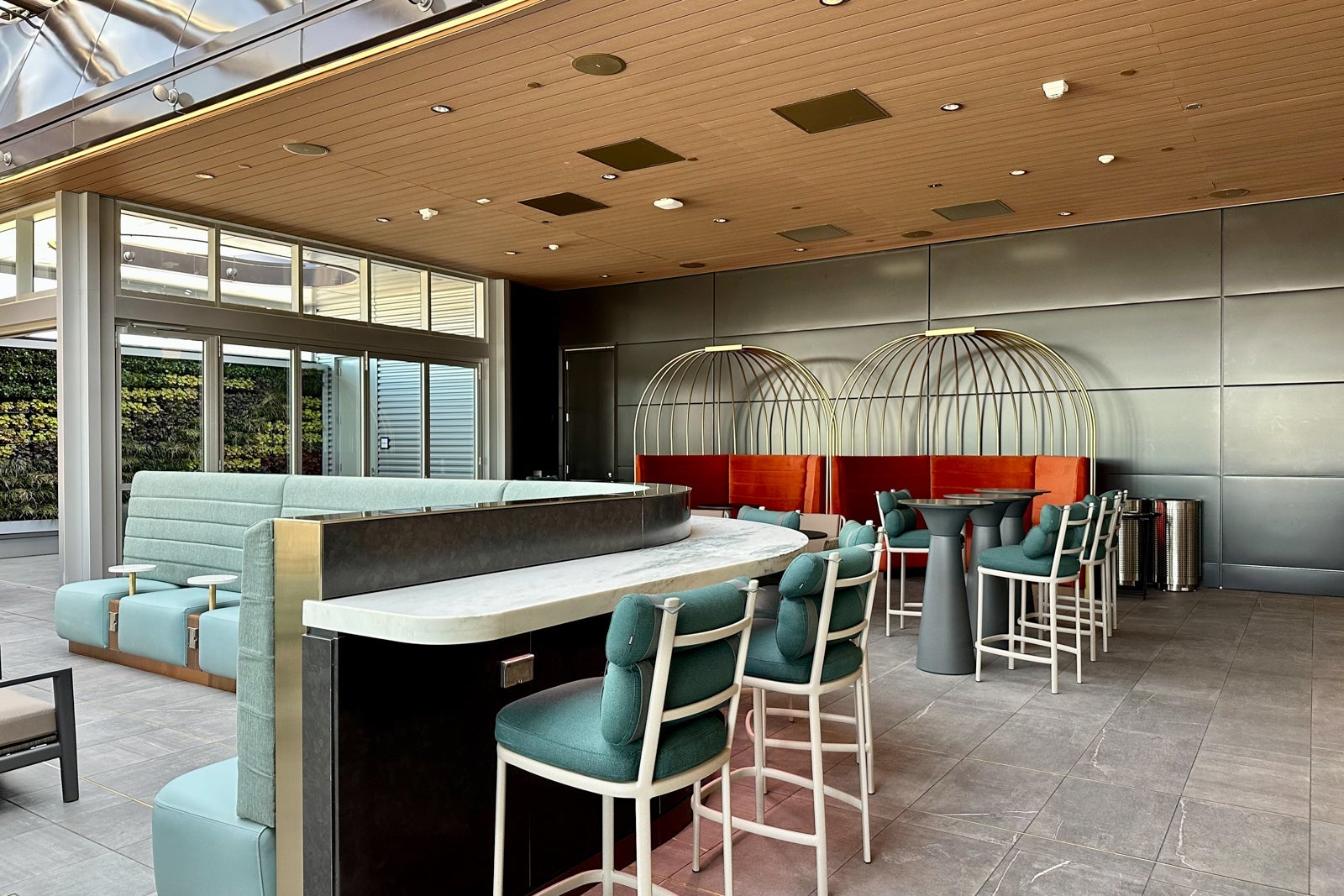 There are even two completely open-air "rooms" on the Sky Deck. One room features a coworking table in front of Delta's new signature green living wall — a feature the airline seems to have borrowed from the Centurion Lounges operated by its credit card issuer, American Express.