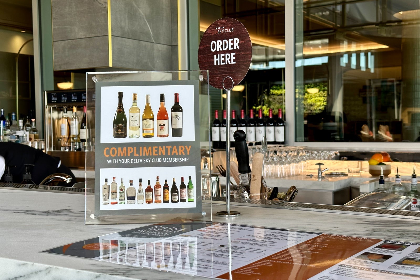 As with other Sky Clubs, there's a menu of complimentary spirits, and travelers can purchase premium beverages using cash or SkyMiles.