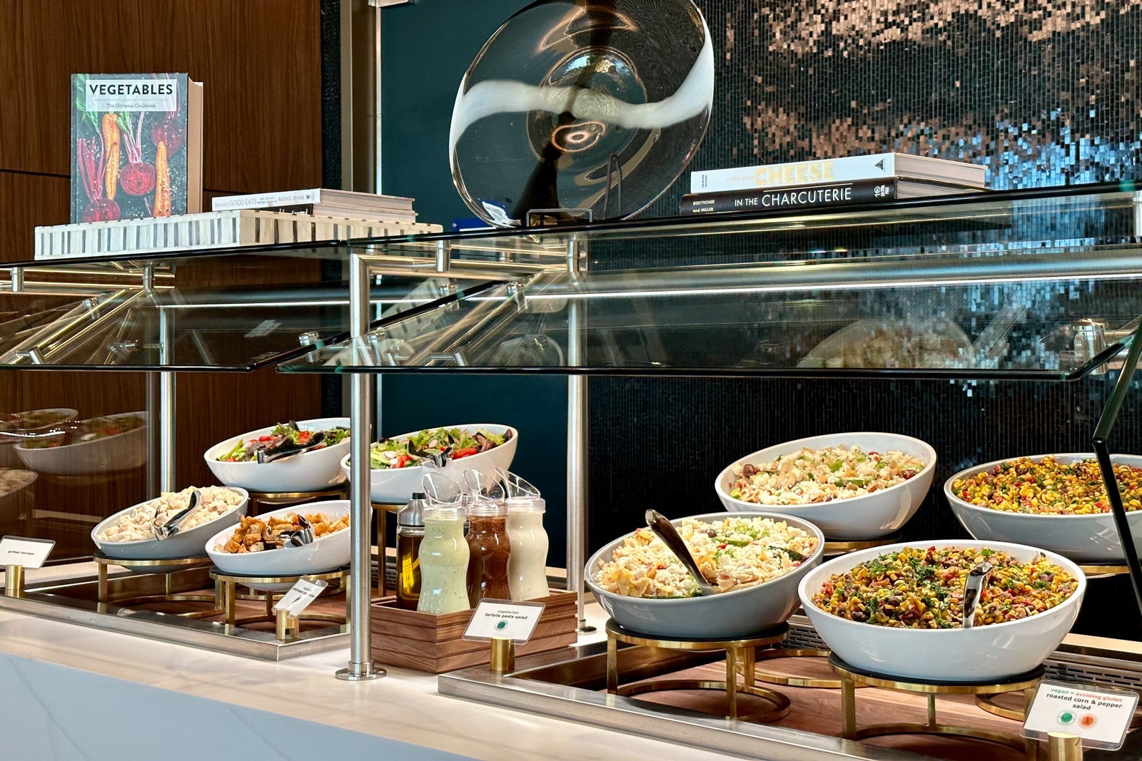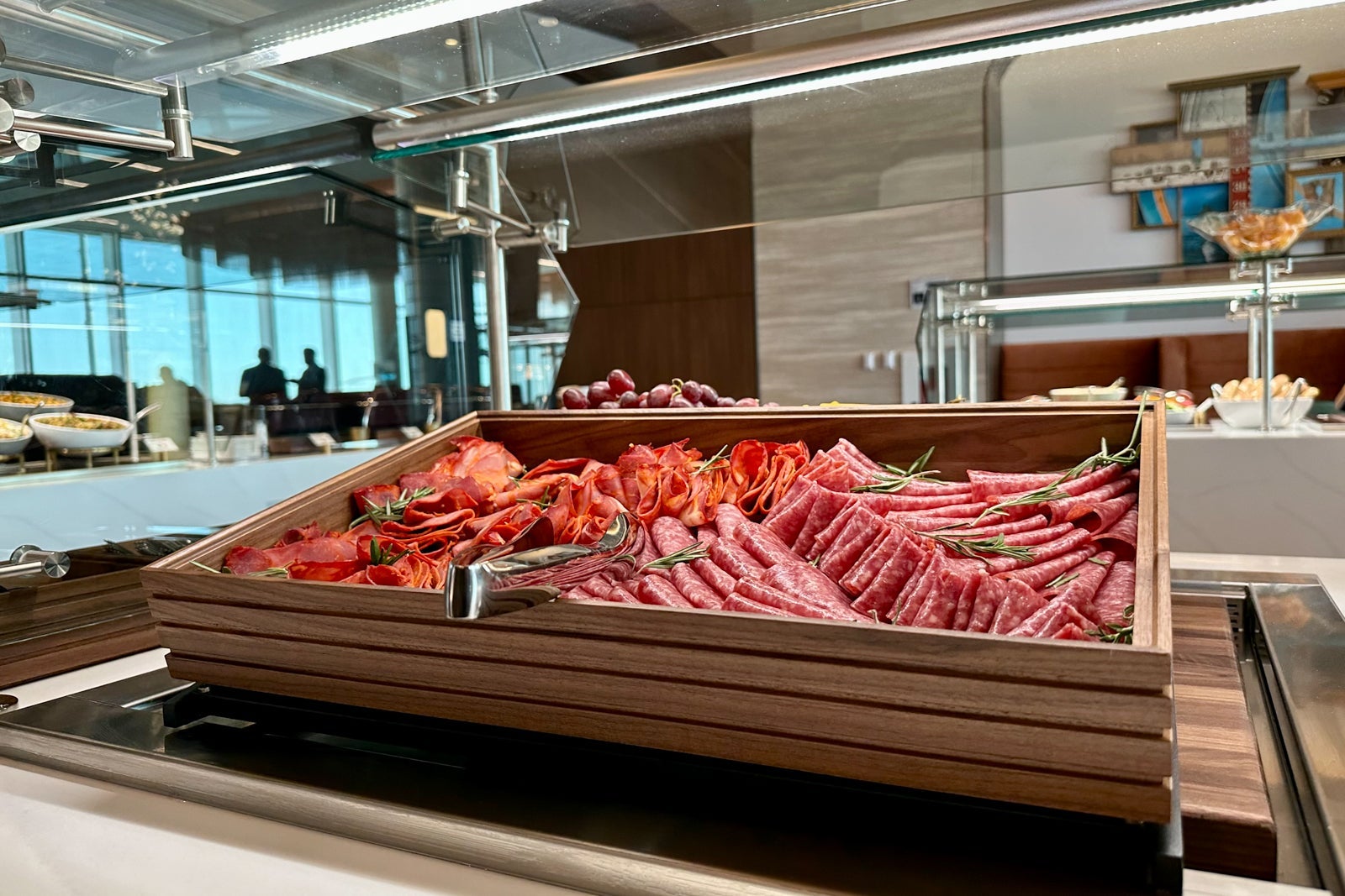 This includes charcuterie plates and cheese boards (that look nothing like the depressing cheese cubes you'll find in Admirals Clubs), a cold salad station, four rotating entrees, a dessert bar and much more.