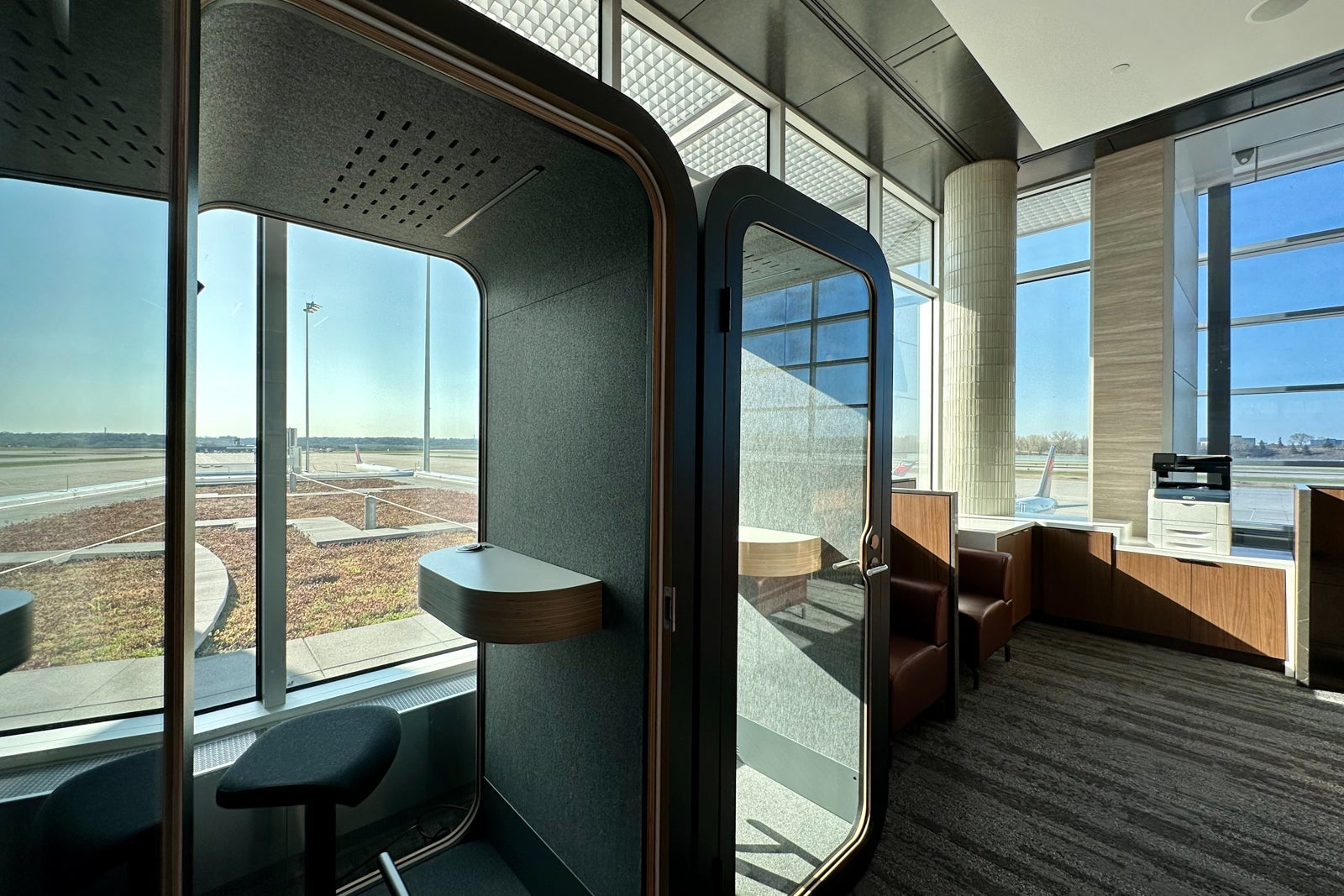 The business center features four rows of individual cubicles, a coworking table and three Framery phone booths, one of which can accommodate travelers who use a wheelchair. These phone booths have been popping up at Sky Clubs nationwide, but I wish Delta added more of them in Minneapolis — I can't imagine finding an empty one during the week.