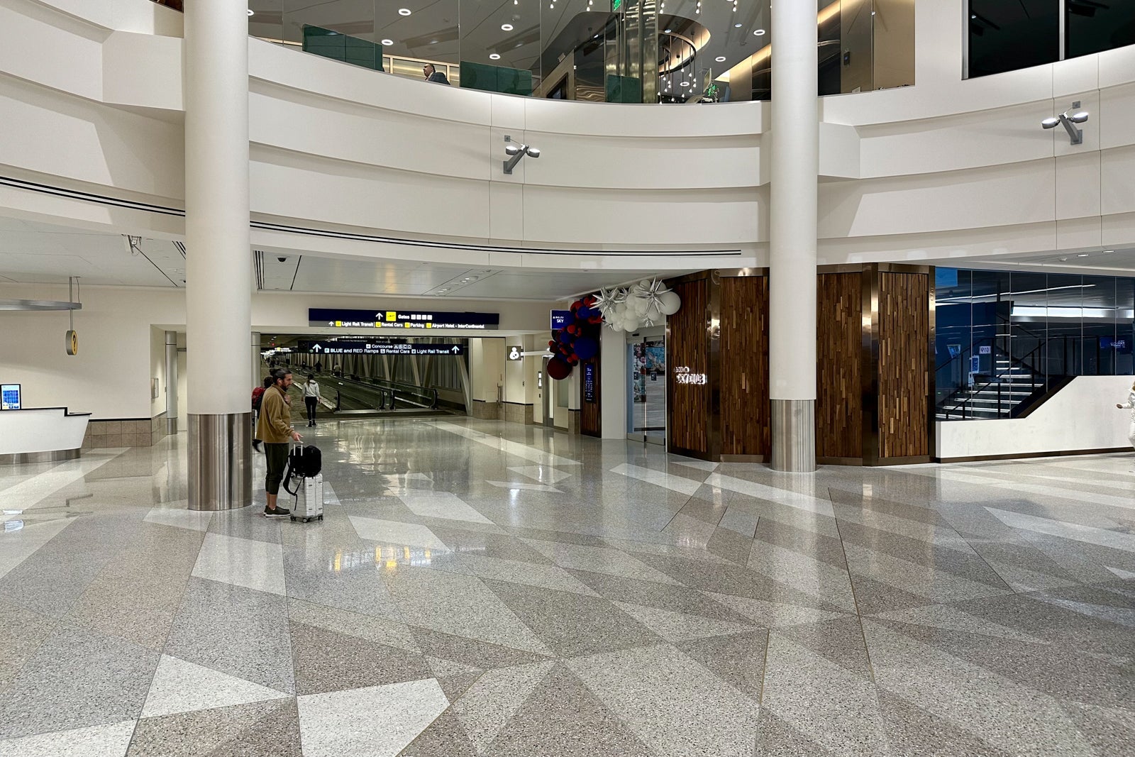 After ascending one level, you'll find yourself in the 21,000-square-foot lounge. There are three self-service check-in kiosks, as well as one agent-staffed reception desk, to help you get registered.