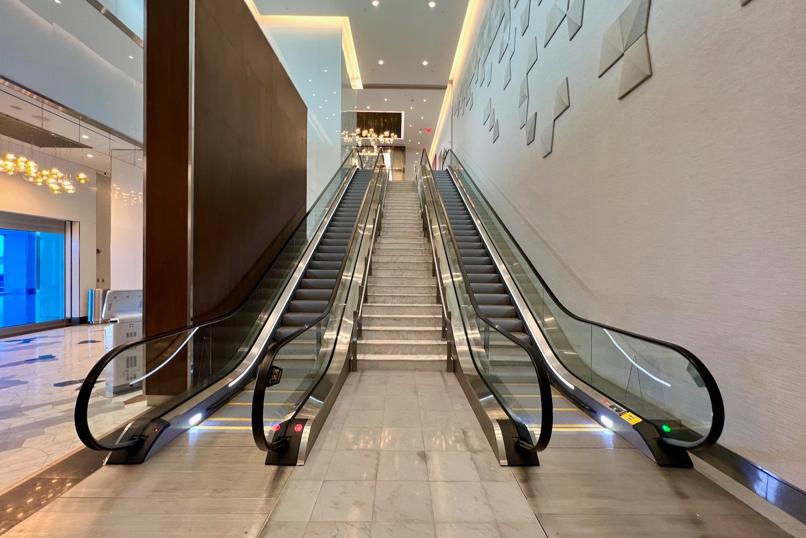 Once inside, you can scan your boarding pass at one of the kiosks to gain entry without needing to visit an agent. You'll then take an escalator, elevator or stairs up one level to the lounge itself.