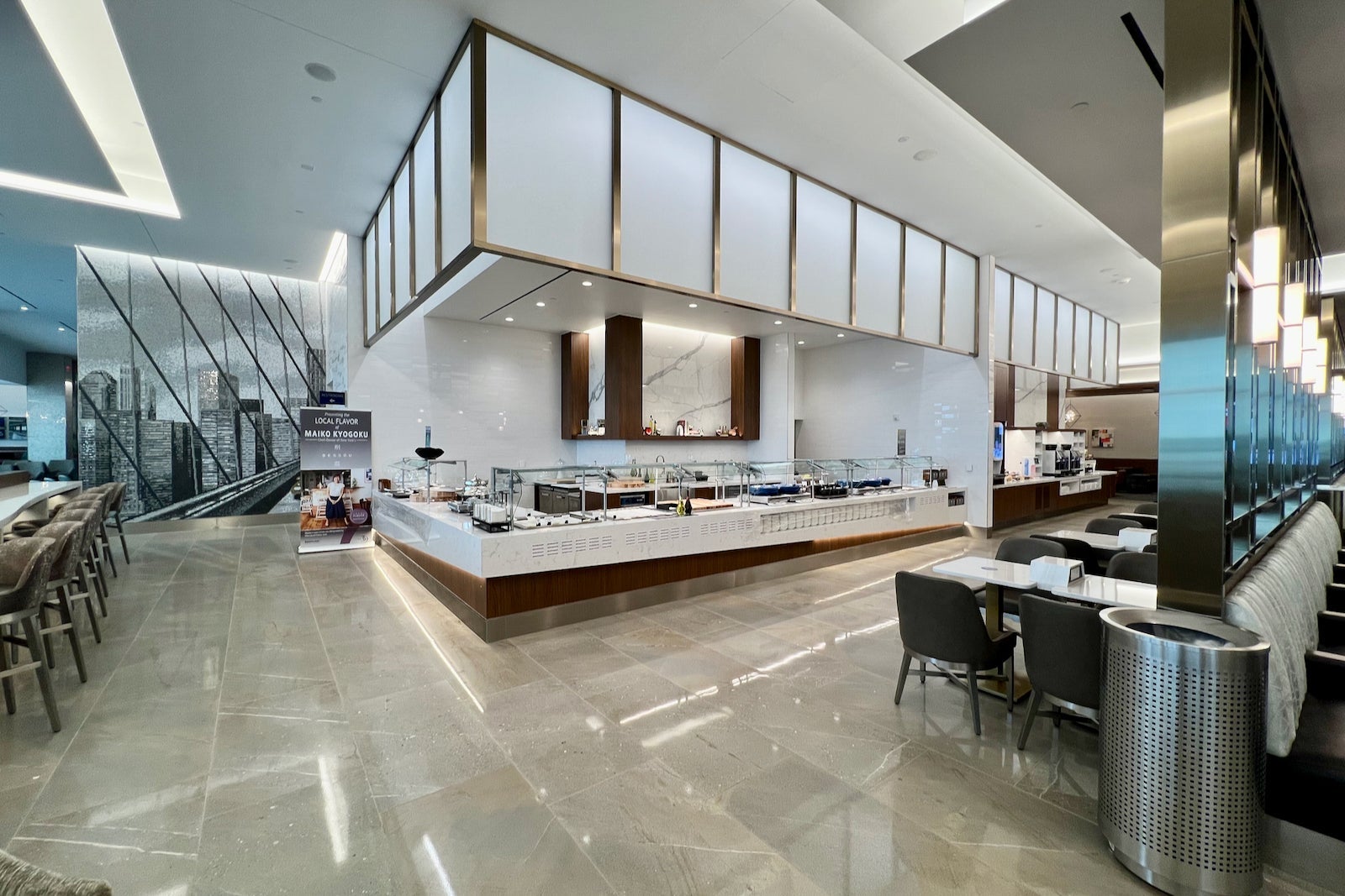 The second buffet is located closer to the western edge of the lounge. This will feature a rotating chef's action station that'll offer different New York City-inspired ethnic foods each week.