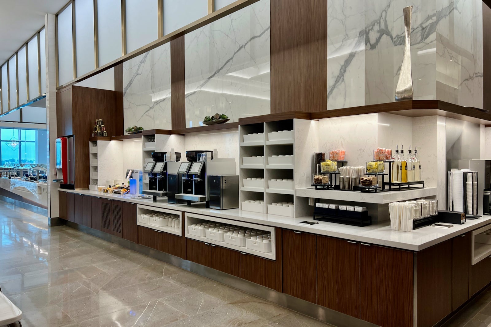 The new Sky Club takes another design cue from the Los Angeles (LAX) outpost — it features not one, but two buffets, which should help spread the crowds around the entire space.