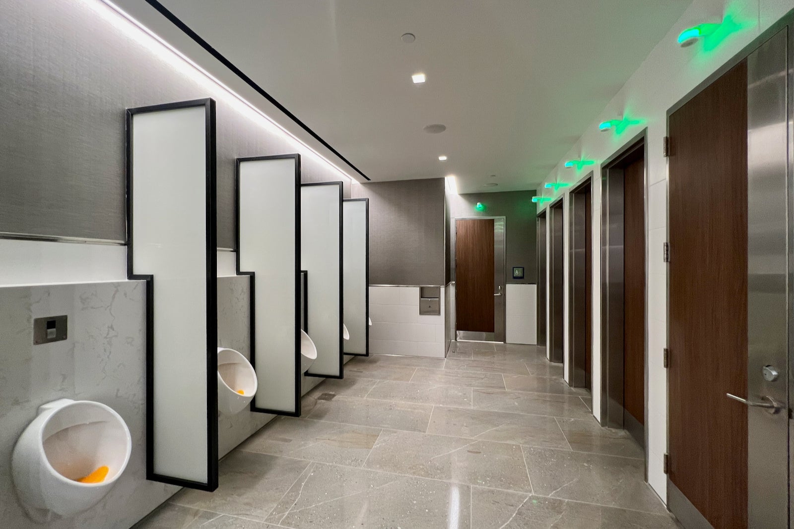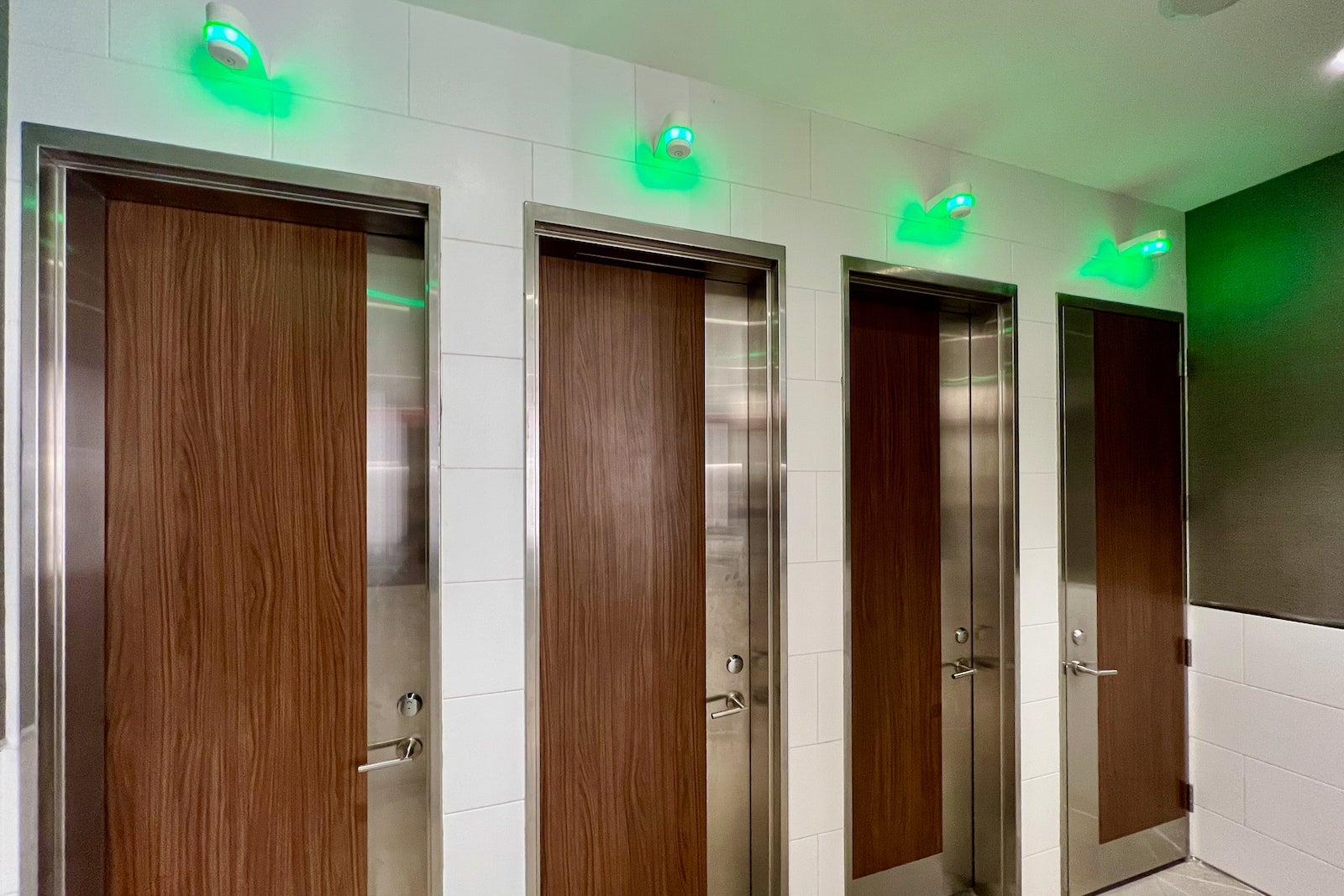My favorite feature, however, is the new green/red occupancy indicator above the stalls, which will tell you which ones are vacant without needing to walk up to each one.