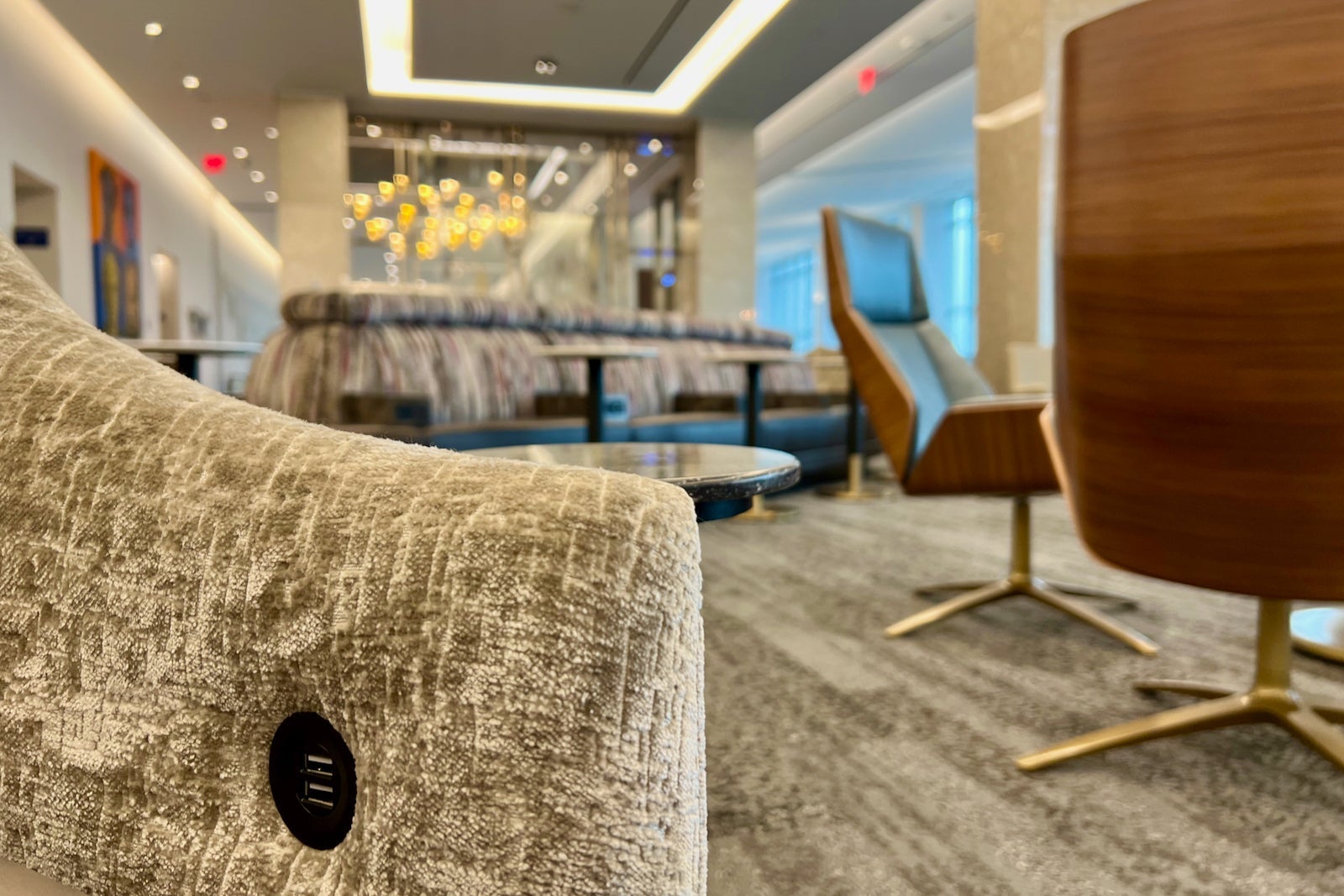 For one, the Sky Club has all the basics covered. There are power outlets, USB-A and USB-C ports at nearly every seat.