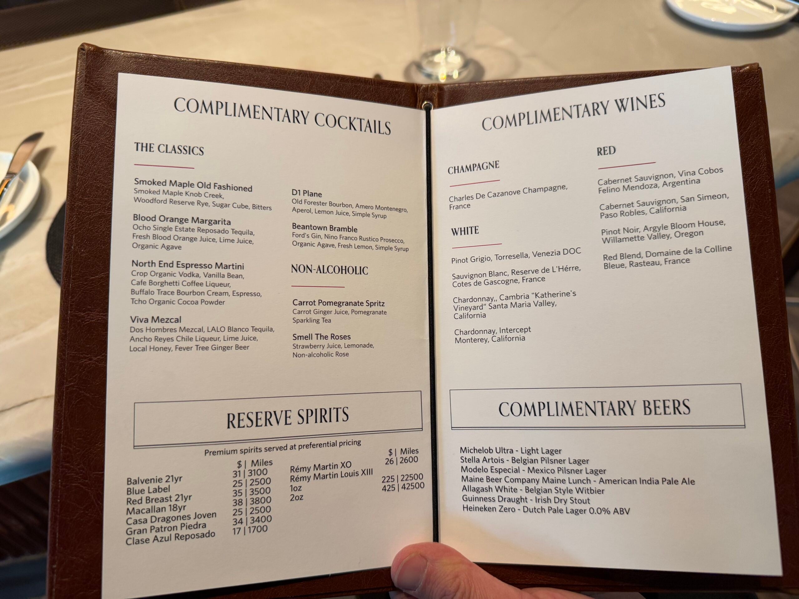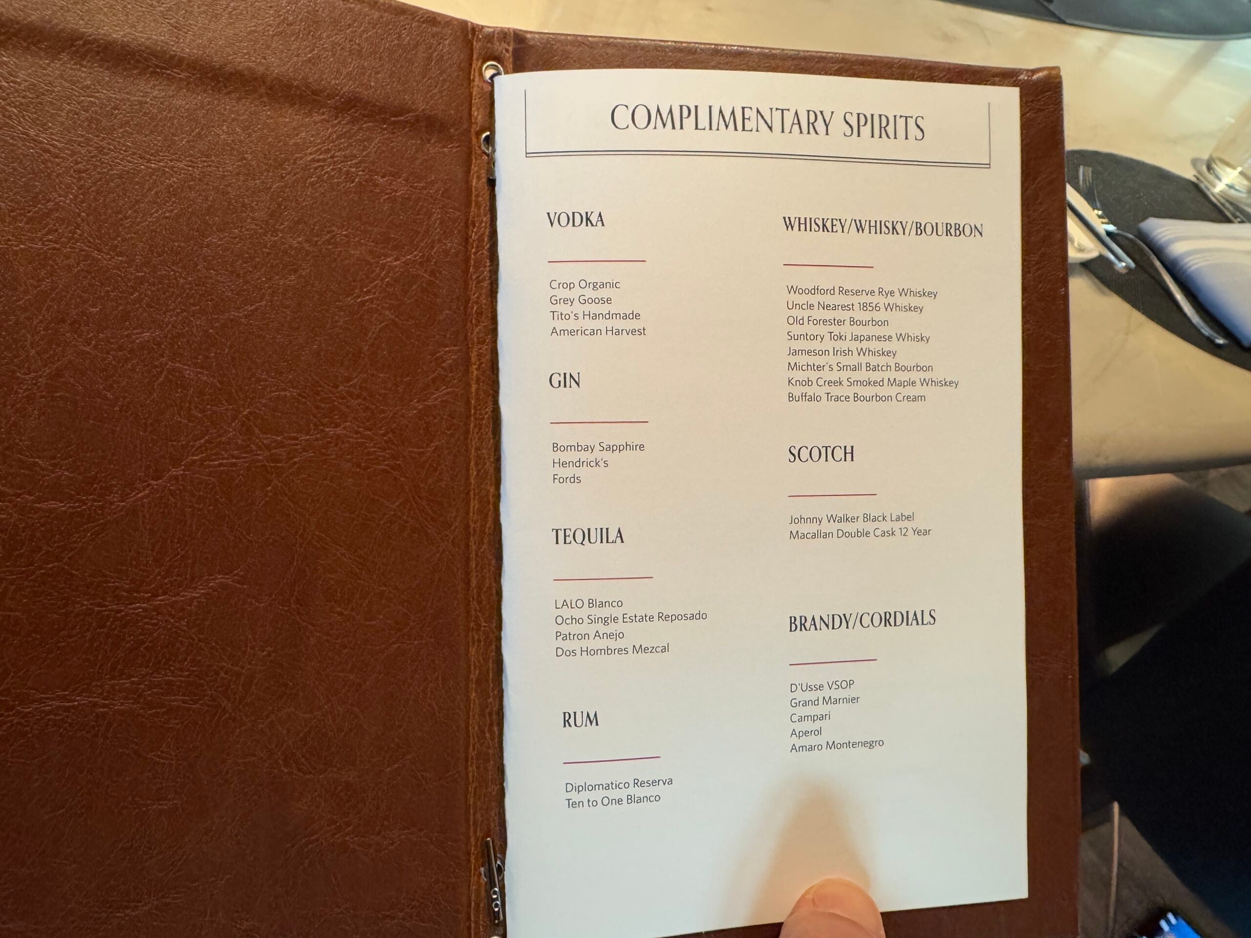 There's a long list of complimentary drinks available, all of which are generally a step up from the included beverages at the Sky Club. Bartenders can make pretty much anything alongside listed cocktail specials, with a wide variety of spirits that includes 10 types of scotch and whisky.