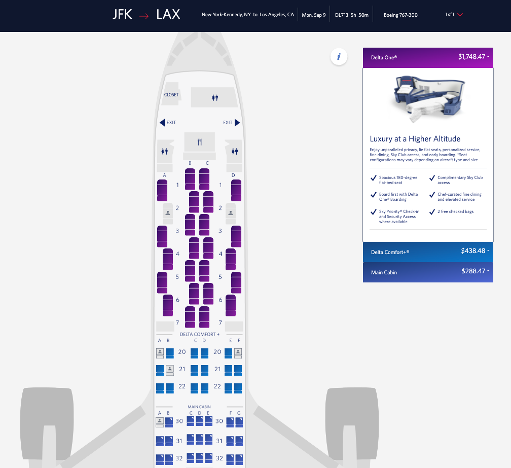 Historically, Delta has flown premium economy-equipped Boeing 767s on select flights between New York and LA. When it does, the Premium Select cabin is marketed as Comfort+, meaning eligible Medallion members can get instant upgrades to these recliners from the moment they book.