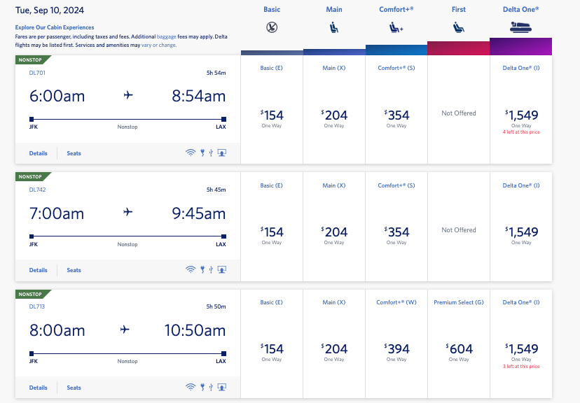 Beginning Sept. 10, Delta will begin selling Premium Select seats on flights between New York's John F. Kennedy International Airport (JFK) and Los Angeles International Airport (LAX).