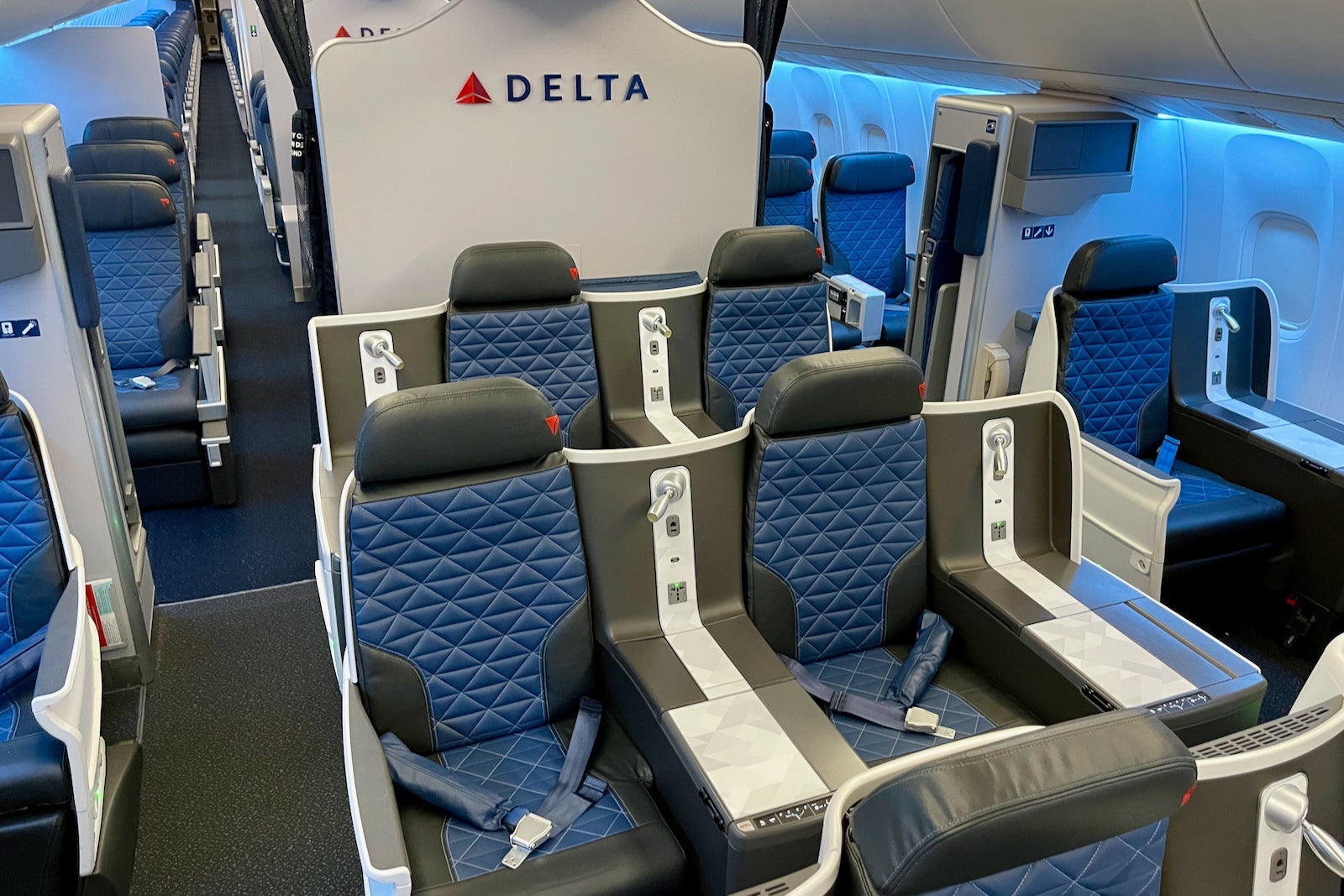 On some planes, the difference between the lie-flat business-class and premium economy cabins is stark. In Delta's case, there's a night-and-day contrast between the Delta One Suites at the pointy end of the A350 or A330neo relative to the Premium Select recliners behind the biz cabin.