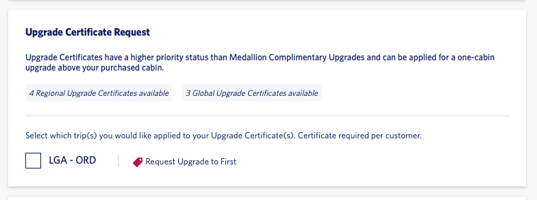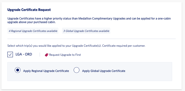 If you're a top-tier Delta flyer, you'll now be able to request an upgrade using any unexpired Regional Upgrade Certificates or Global Upgrade Certificates when making a new reservation.