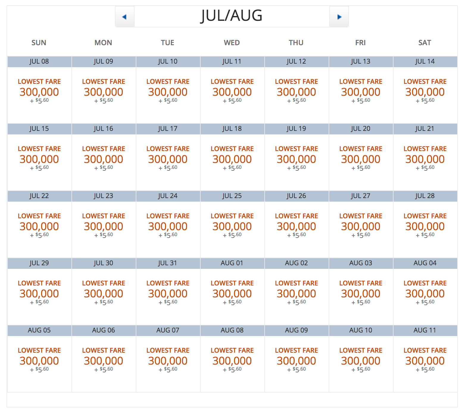 If you're looking to fly in the Delta One Suite on the newly configured 777-200, be prepared to fork out a hefty number of miles. For each of the days that the aircraft is showing as operating on the DTW-PEK route in July, it will cost 300,000 SkyMiles + $5.60.