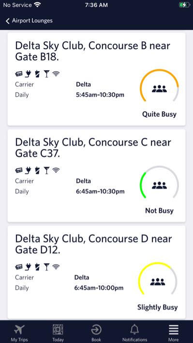 As with the American Express Centurion Lounge capacity indicators, the Delta app will display four occupancy levels ranging from "not busy" to "extremely busy."