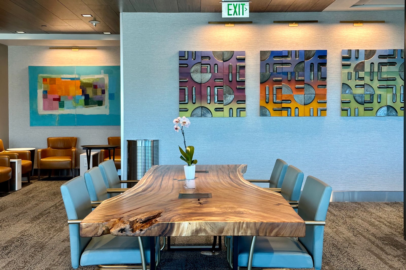 The airline's locally inspired art program made its way to this new Sky Club, which further enhances the visual appeal of the space.