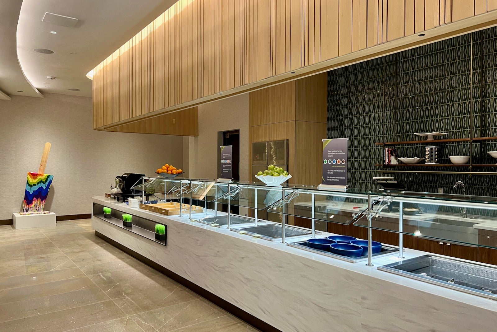 The main buffet area is located just as you enter the lounge itself, and it wraps around the perimeter of the space in a semi-circular configuration.