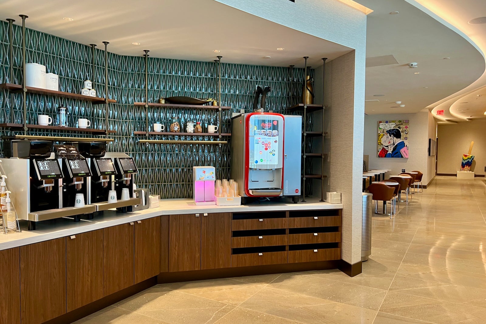 The second one is located at the back of the lounge. This area will likely get much less crowded, yet it'll still offer the same dining selection, including some additional treats such as a walk-up candy bar and packaged snacks.