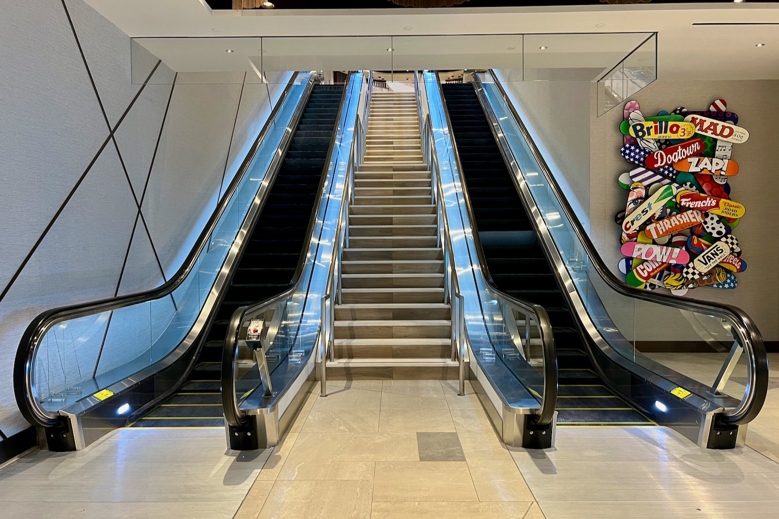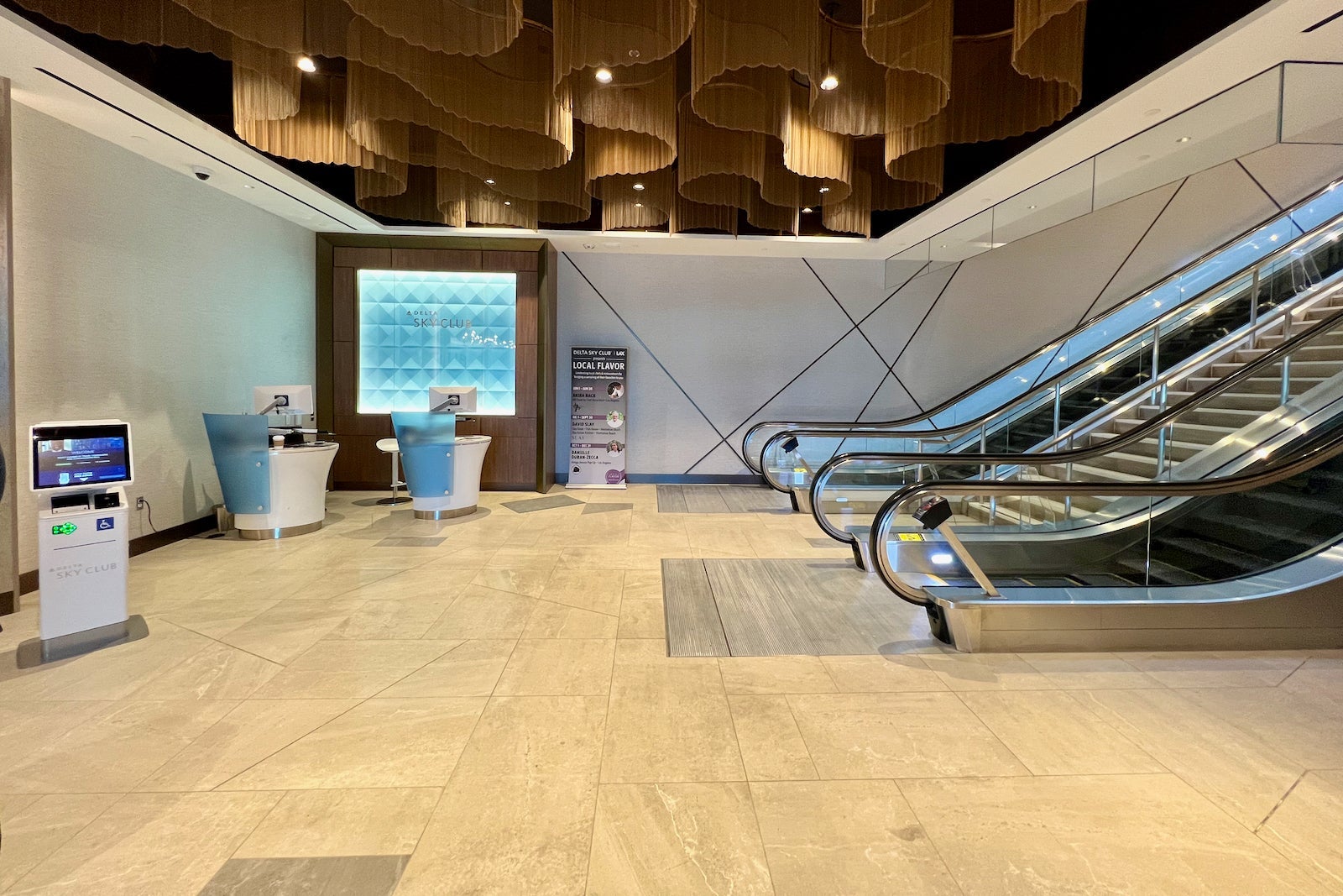 A set of escalators takes you to the upper level, where you'll enter the lounge itself.