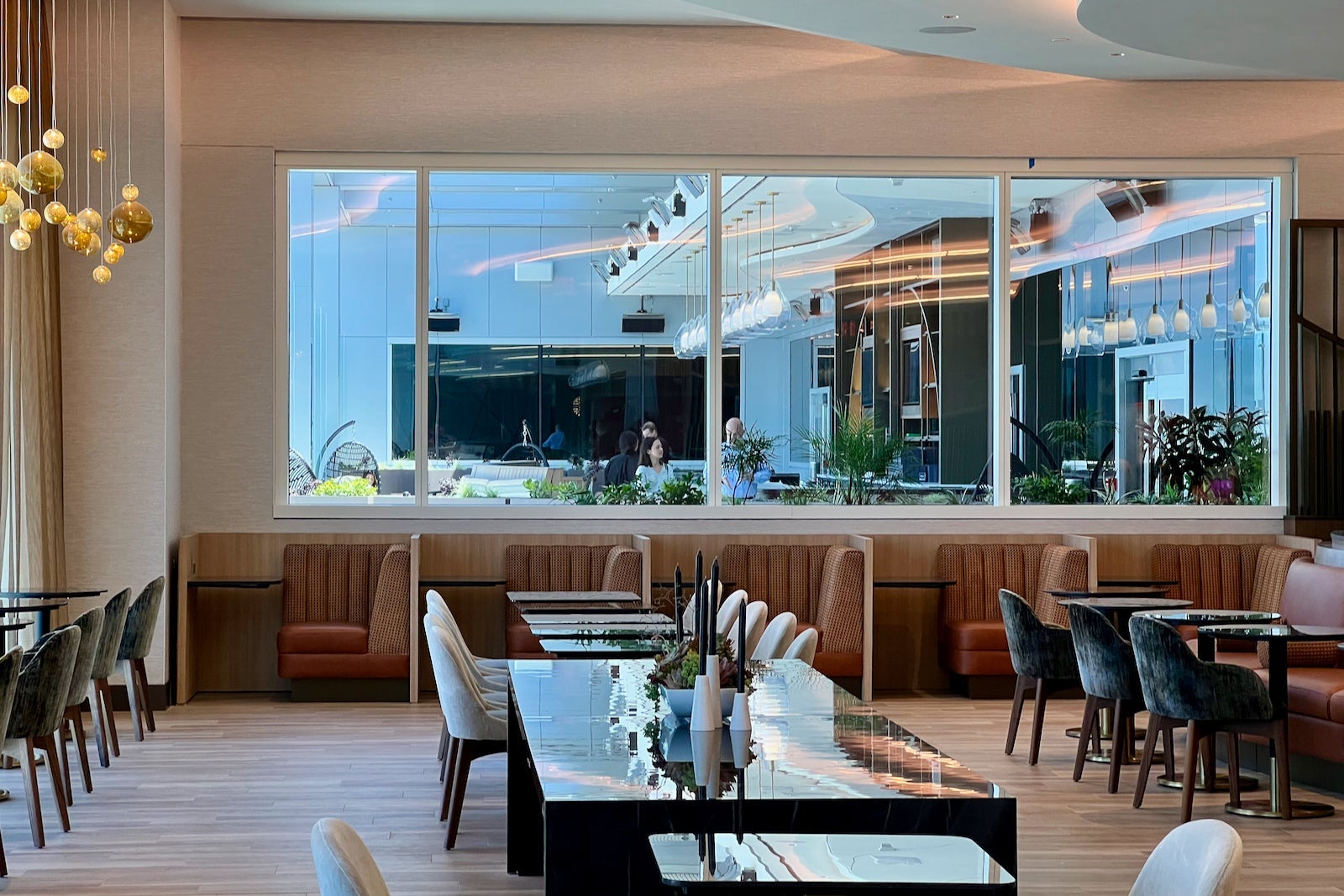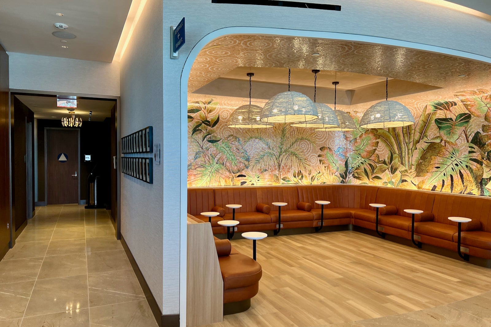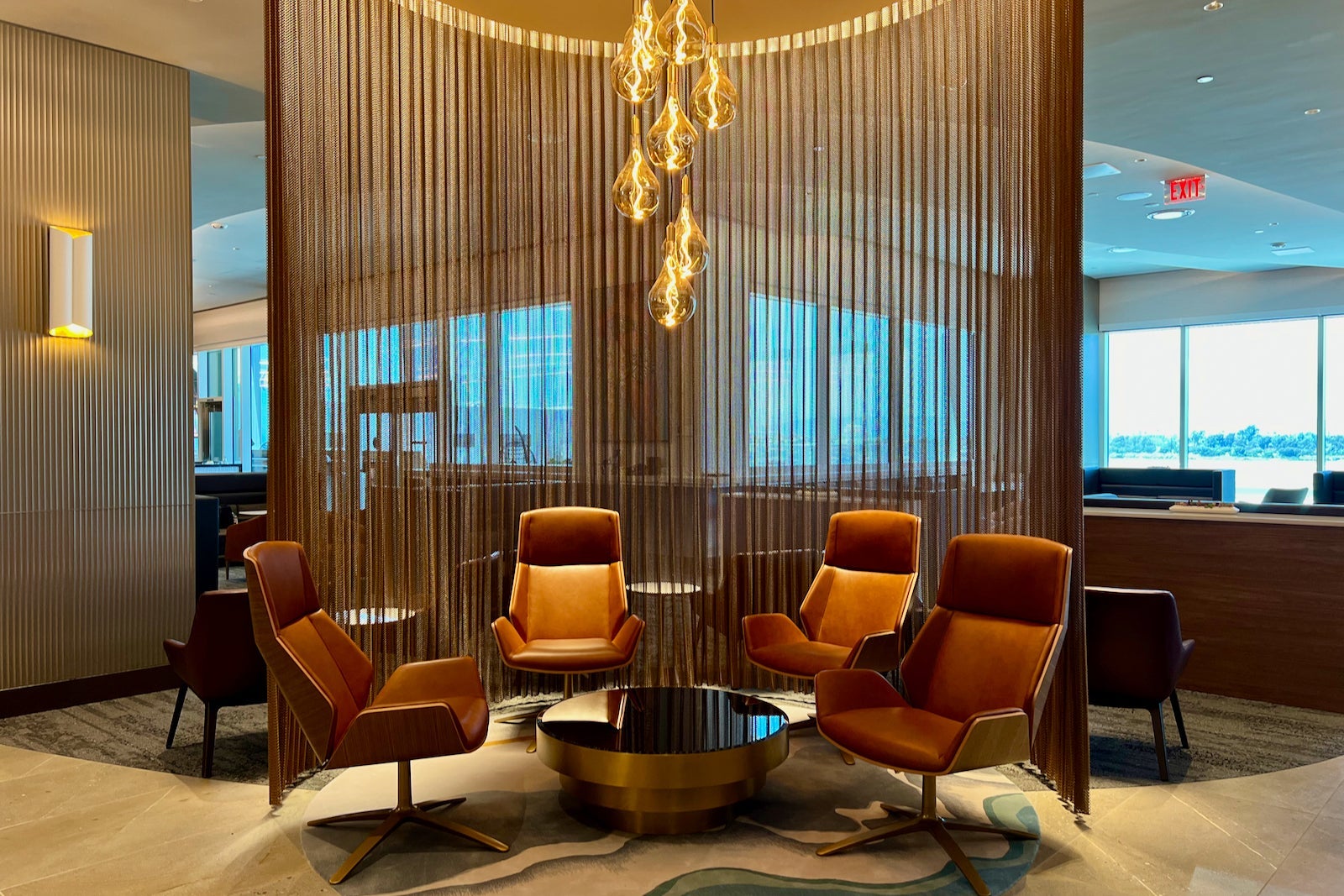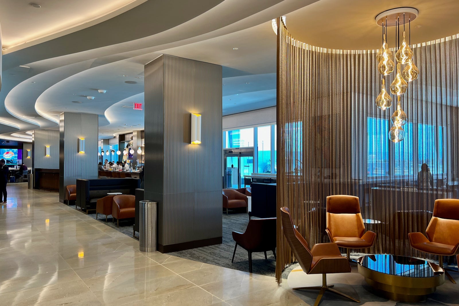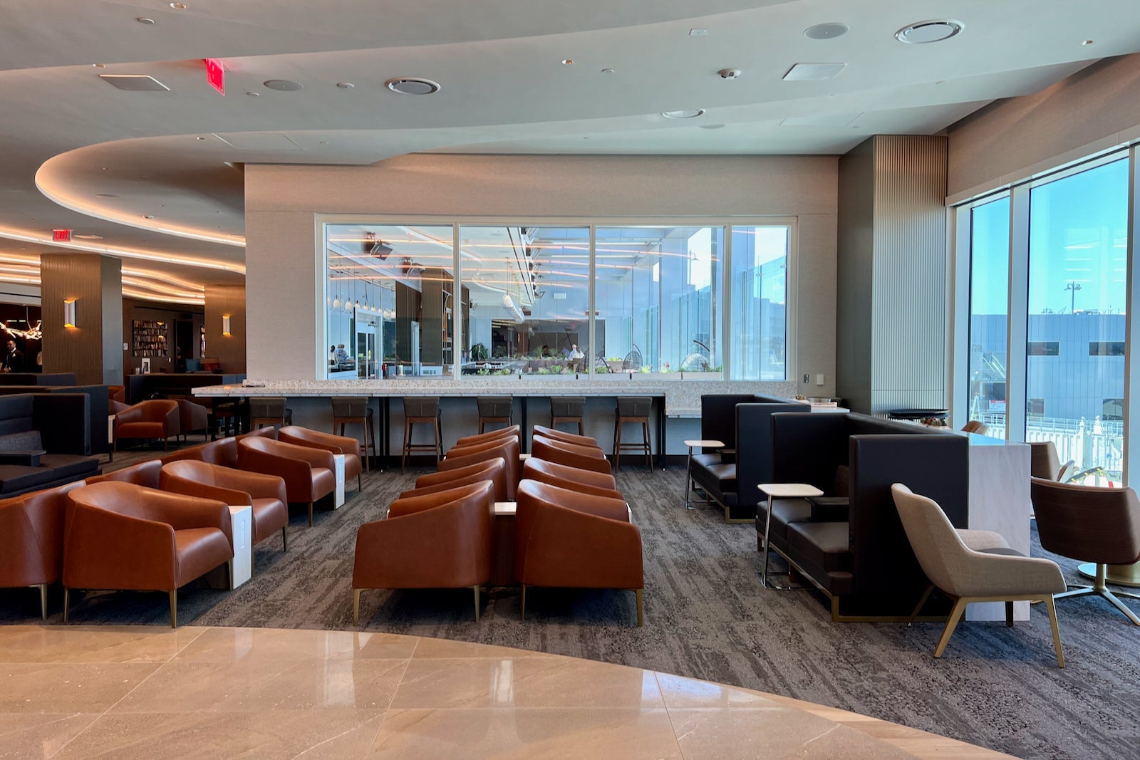 This Sky Club, however, dispels all of those notions about airline lounges. It both literally and figuratively raises the bar.