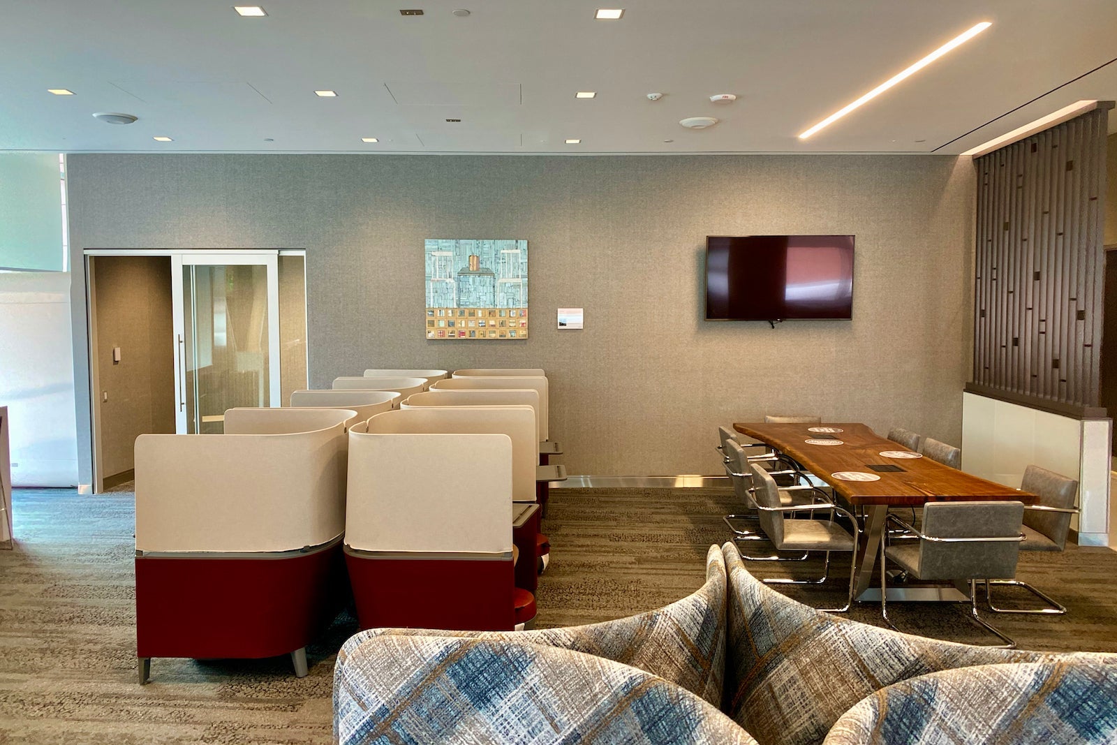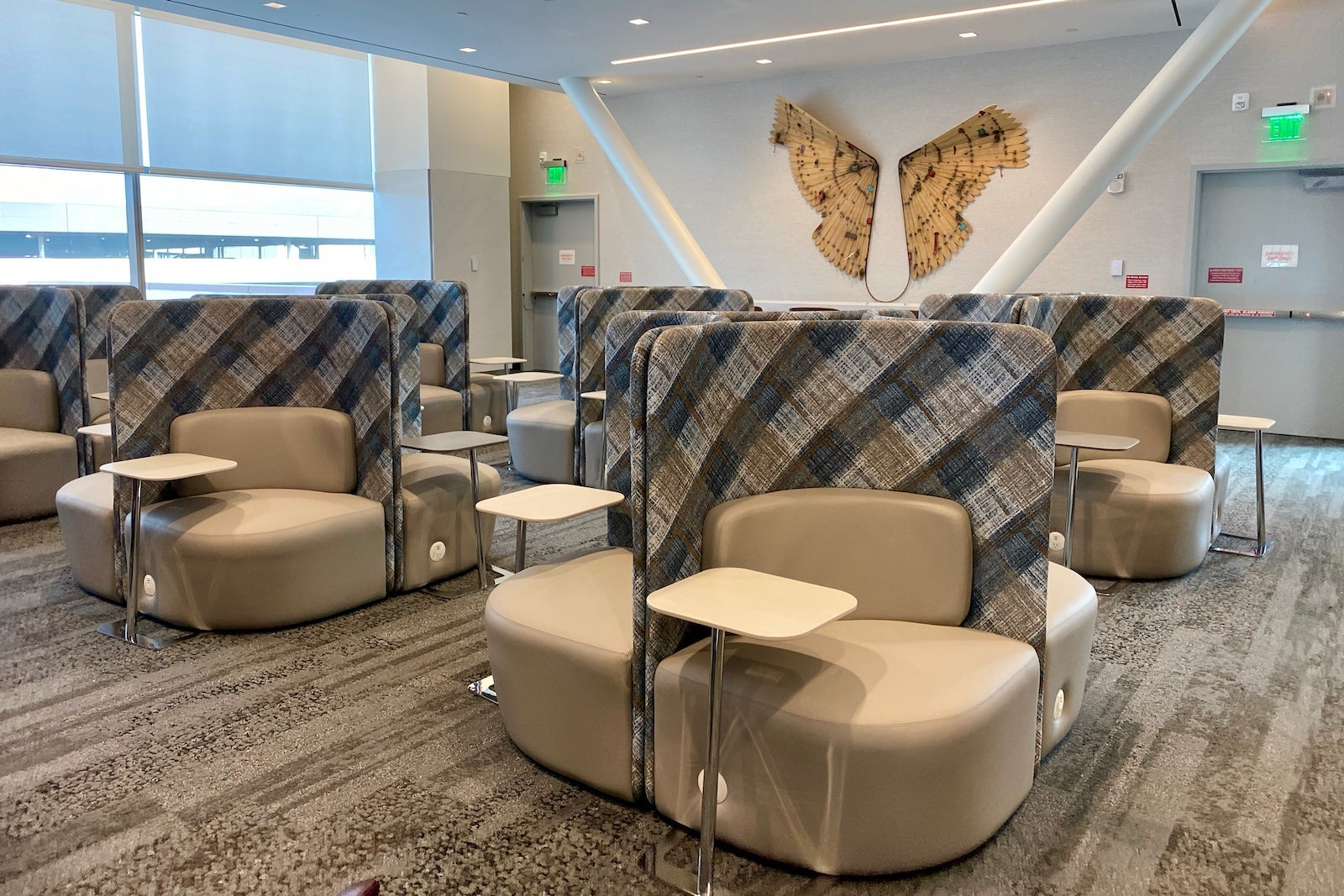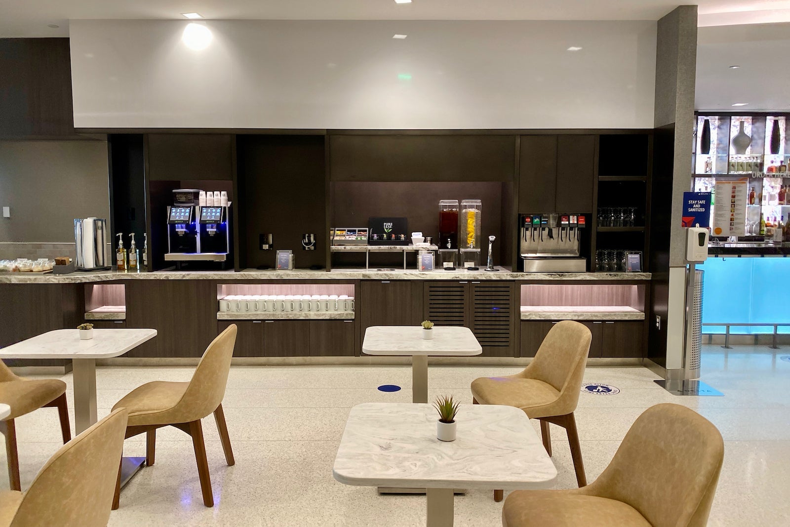 There's plenty of seating to handle post-pandemic crowds, innovative amenities, two full-service bars and buffets, a year-round Sky Deck, a vibrant arts program and more. Plus, with enhanced cleaning and COVID-related safety measures, the lounge is the perfect space to distance from others.
