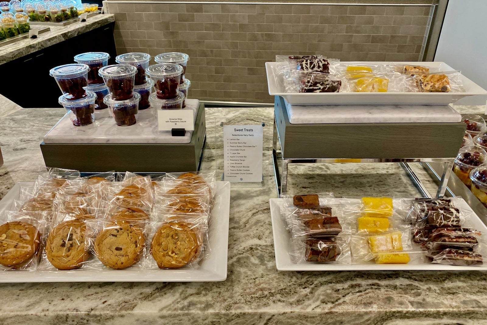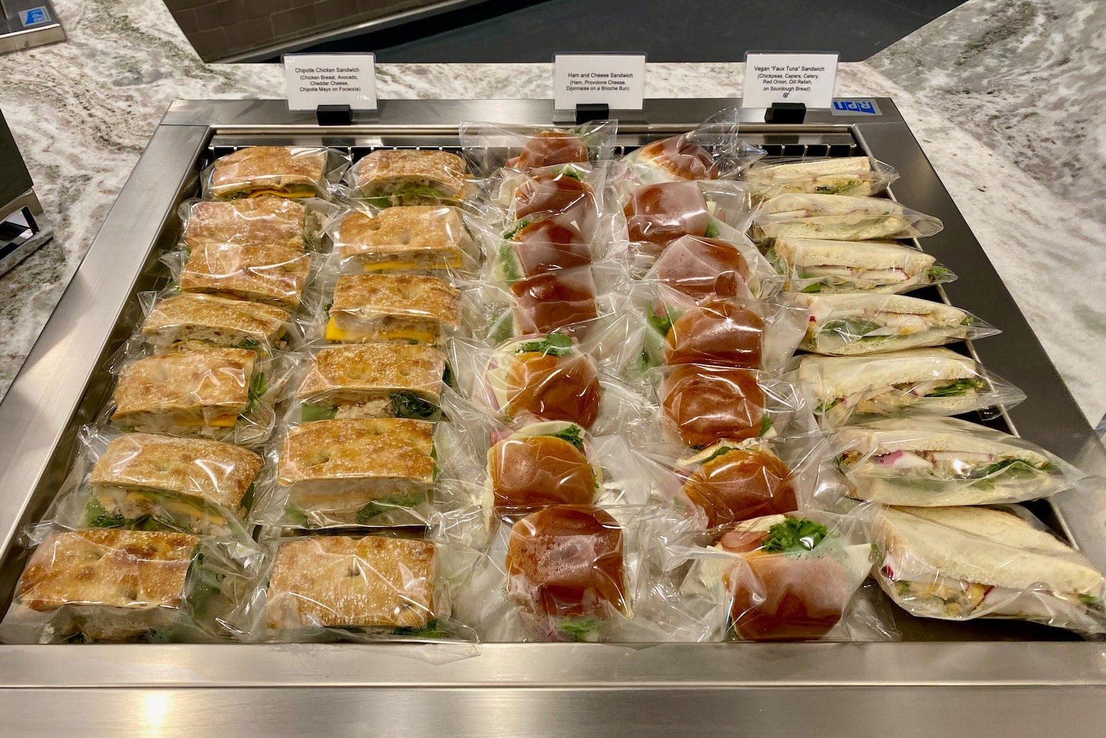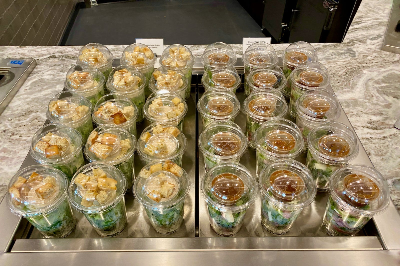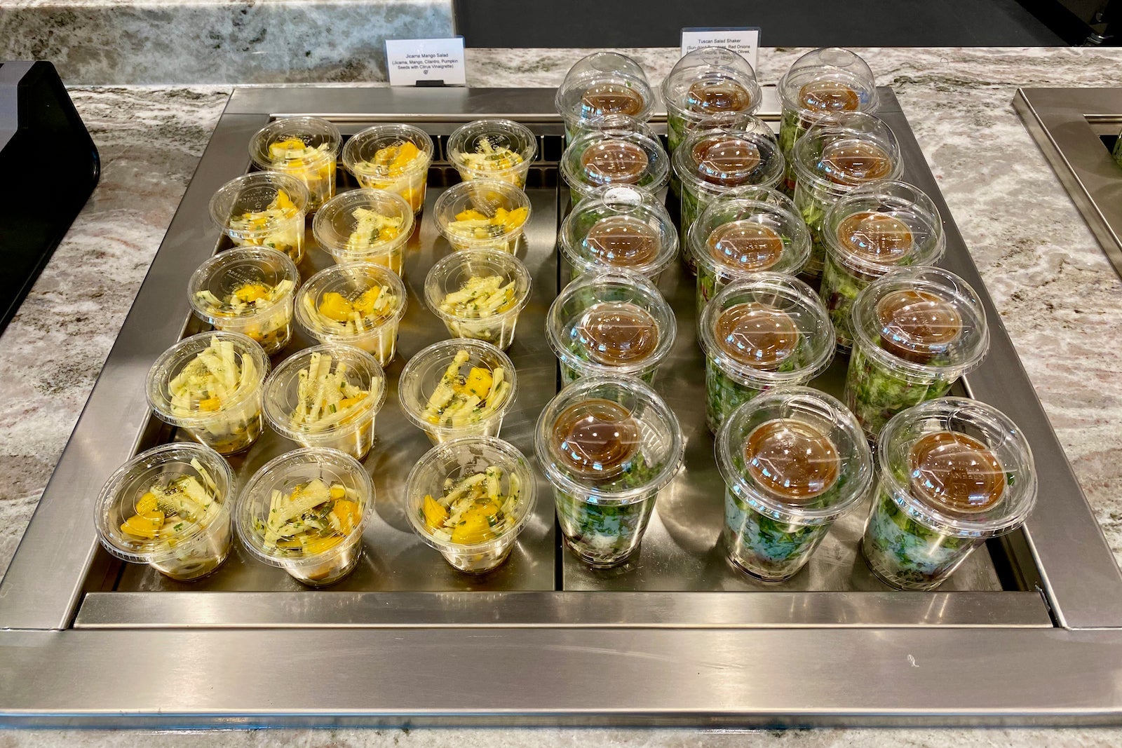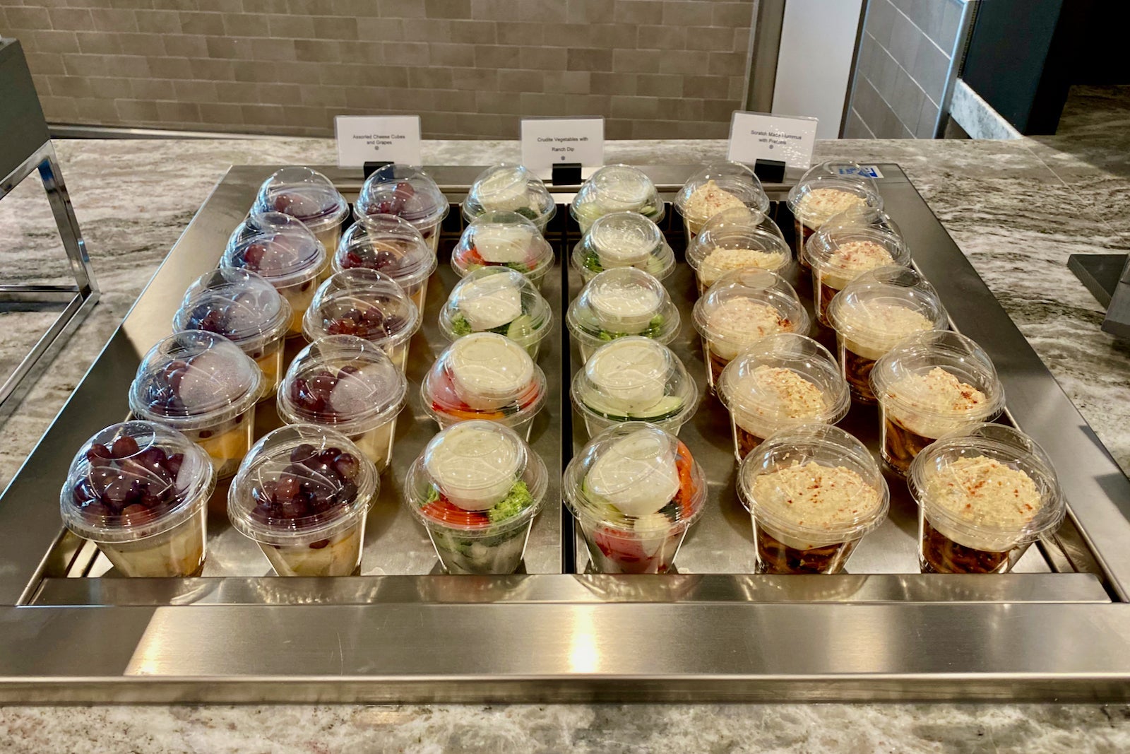 All food is served in individually-wrapped, pre-packaged containers. Unlike some of Delta's competitors, you won't find many packaged snacks at the Sky Club during COVID. Roussel noted that "packaged snacks aren't the answer for our guests, and we're exploring how we do soups and buffets safely."