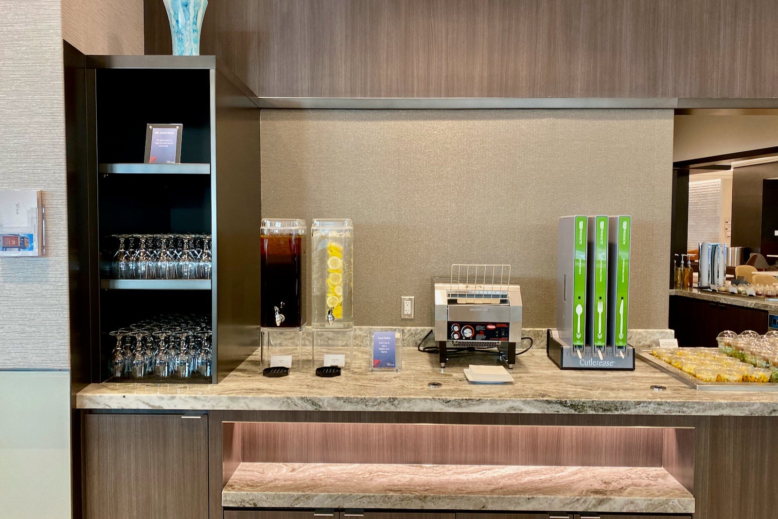 In addition, you'll find freestanding hand sanitizing stations throughout the lounge.