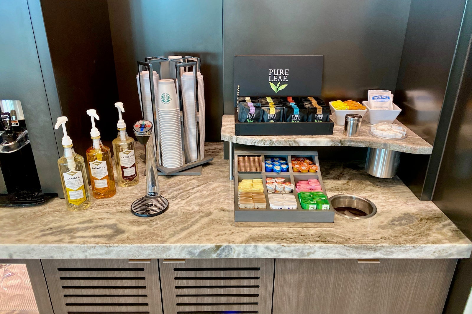 Delta's got non-alcoholic drinks covered too. There are a whopping five state-of-the-art Eversys coffee machines, providing plenty of caffeine for all lounge guests at the touch of a button. Roussel noted that these machines are some of the best for airport lounges since they're connected to the internet and will alert the lounge attendants if a part needs servicing.