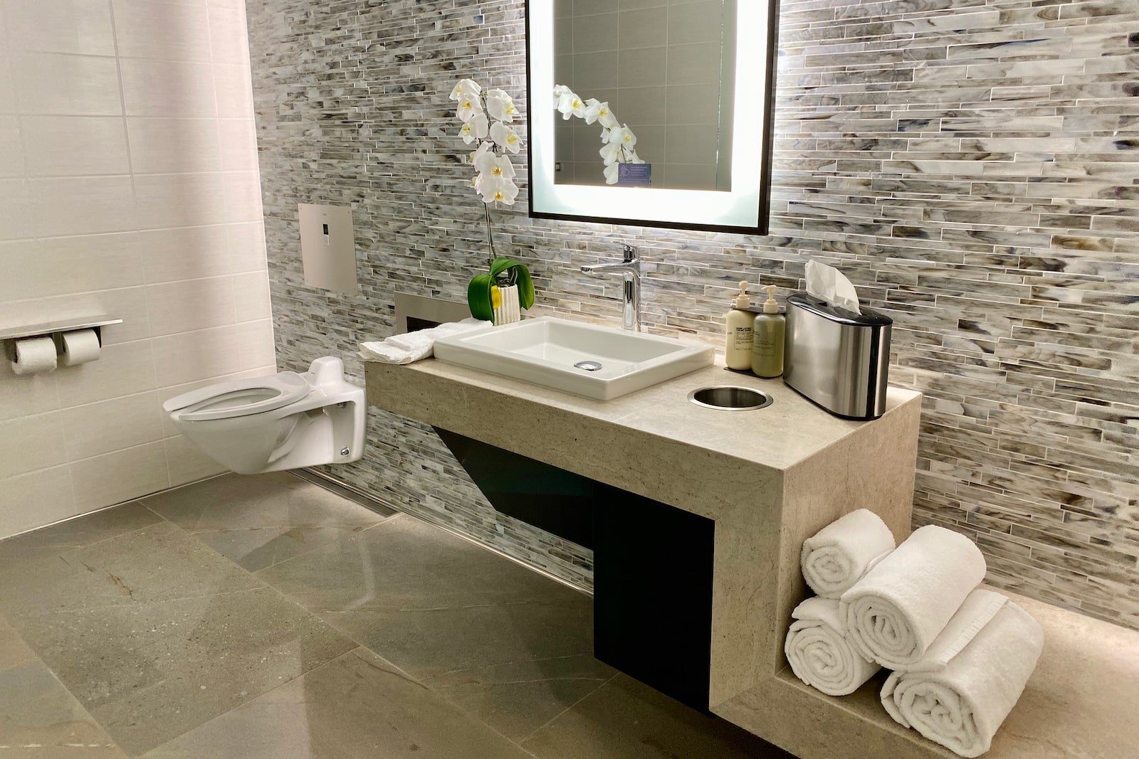 To start, there are two sets of luxurious restrooms located at either end of the lounge. Roussel noted that "we pay a lot of attention to the bathroom." It shows.