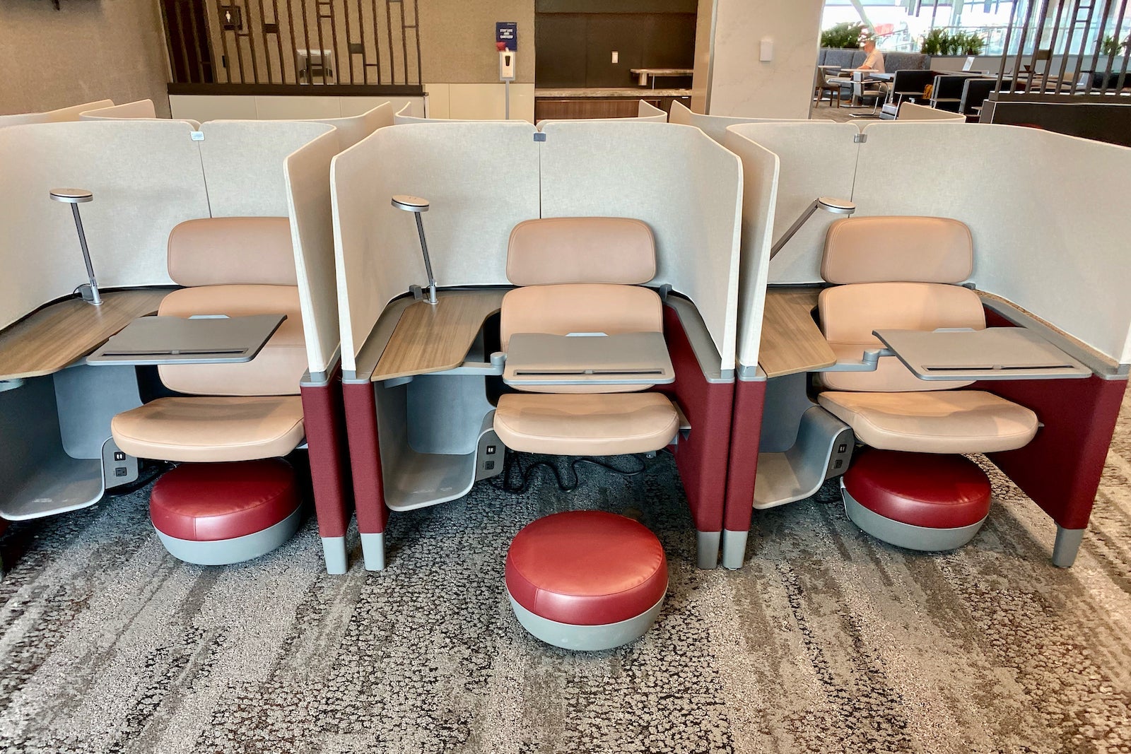 You'll even find individual desks with sliding tables and footrests. These desks first debuted in the Seattle Sky Club and "after listening to guest feedback, we'll see them in other clubs moving forward too," Claude Roussel, managing director of Sky Clubs, told TPG during our tour.