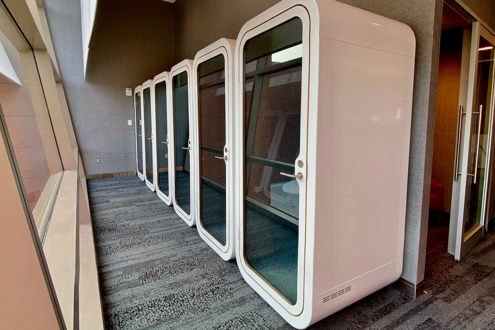 Delta will also pilot a new amenity offering in the Salt Lake City flagship. There are six soundproof Framery phone booths located near the Sky Deck area. These are a welcome addition for those on conference calls or catching up with a loved one. But they're especially exciting for anyone who has overheard another passenger's life story while trying to relax in the lounge.